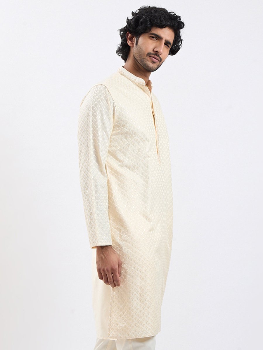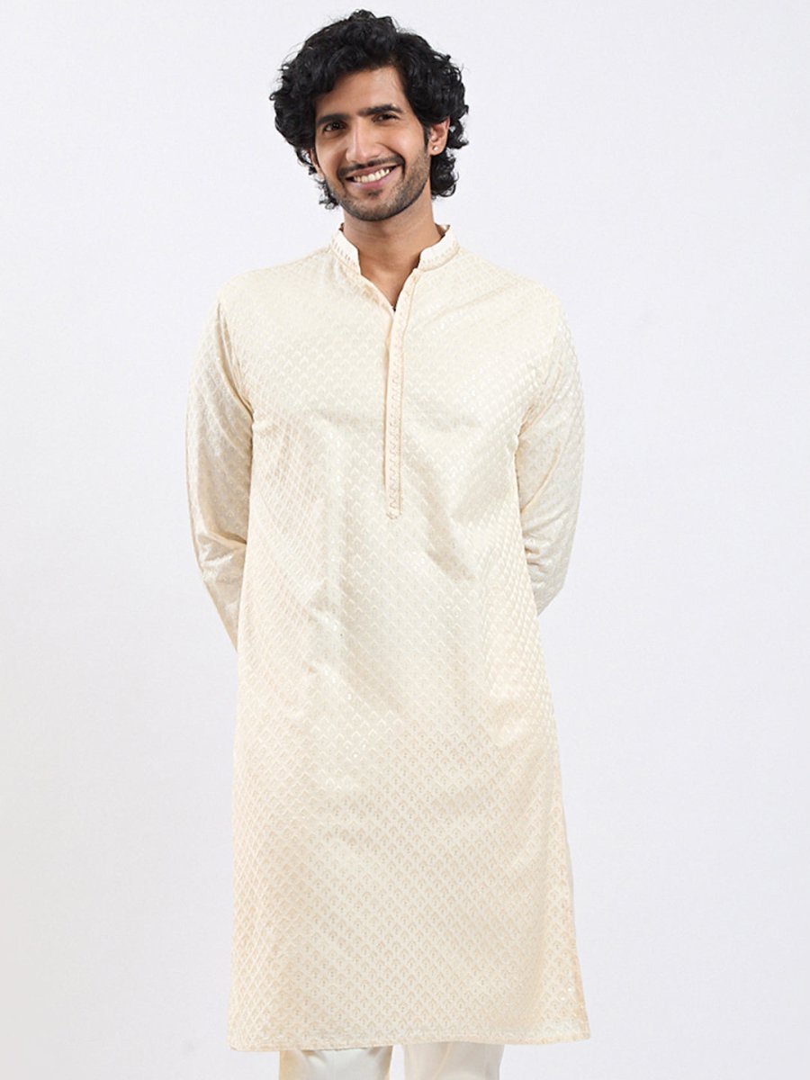 Men's Cream Viscose Kurta – Timeless Ethnic Elegance - House of Sarvati LLC