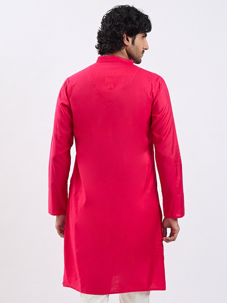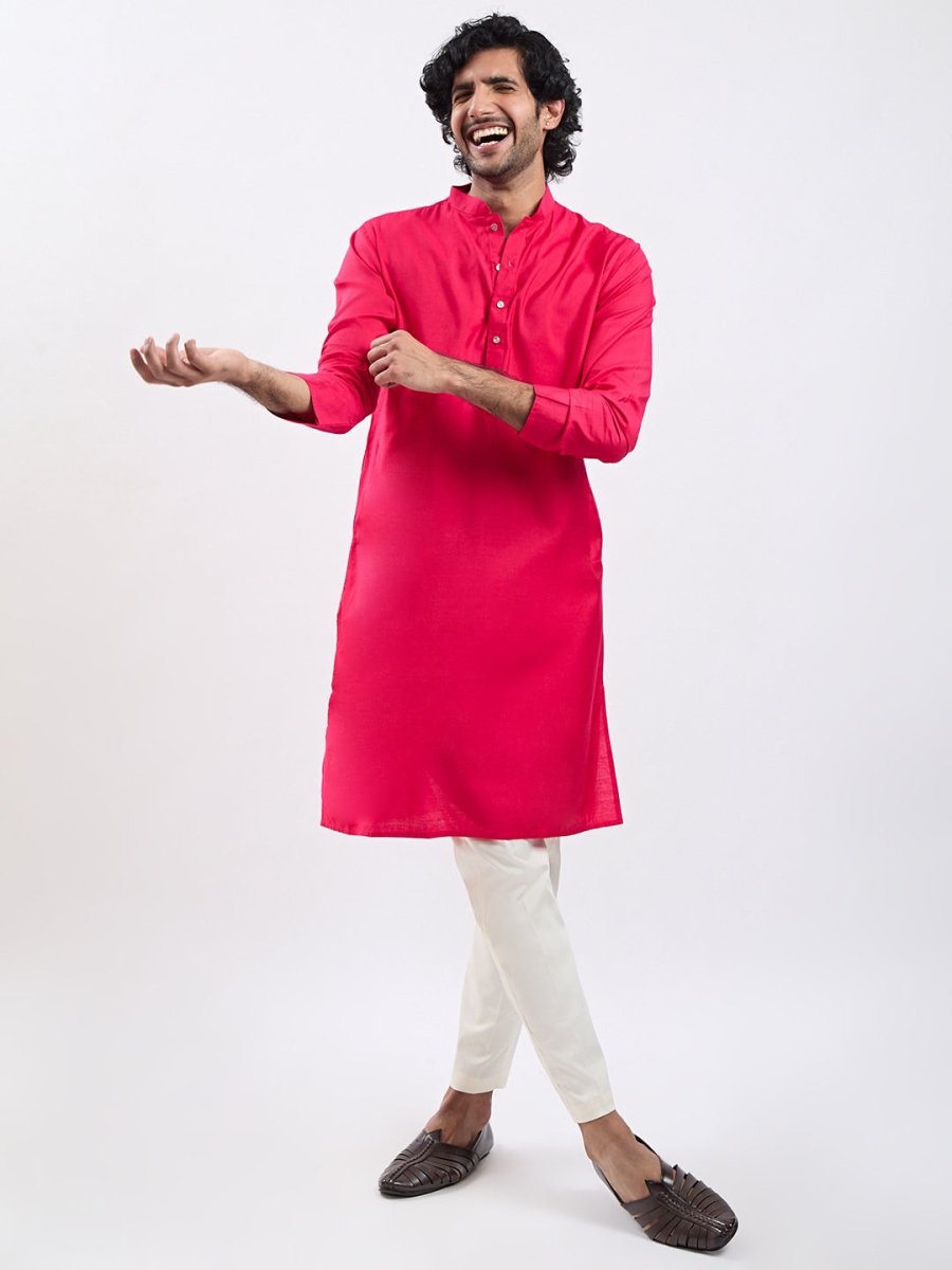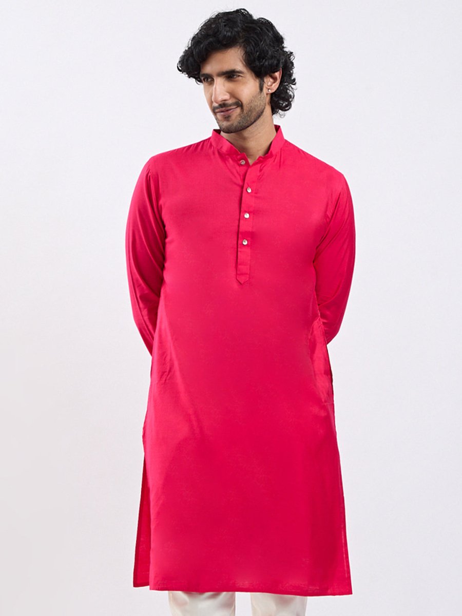 Solid viscose kurta, Knee length kurta has a mandarin collar, long sleeves, button placket, straight hem and silde slits.