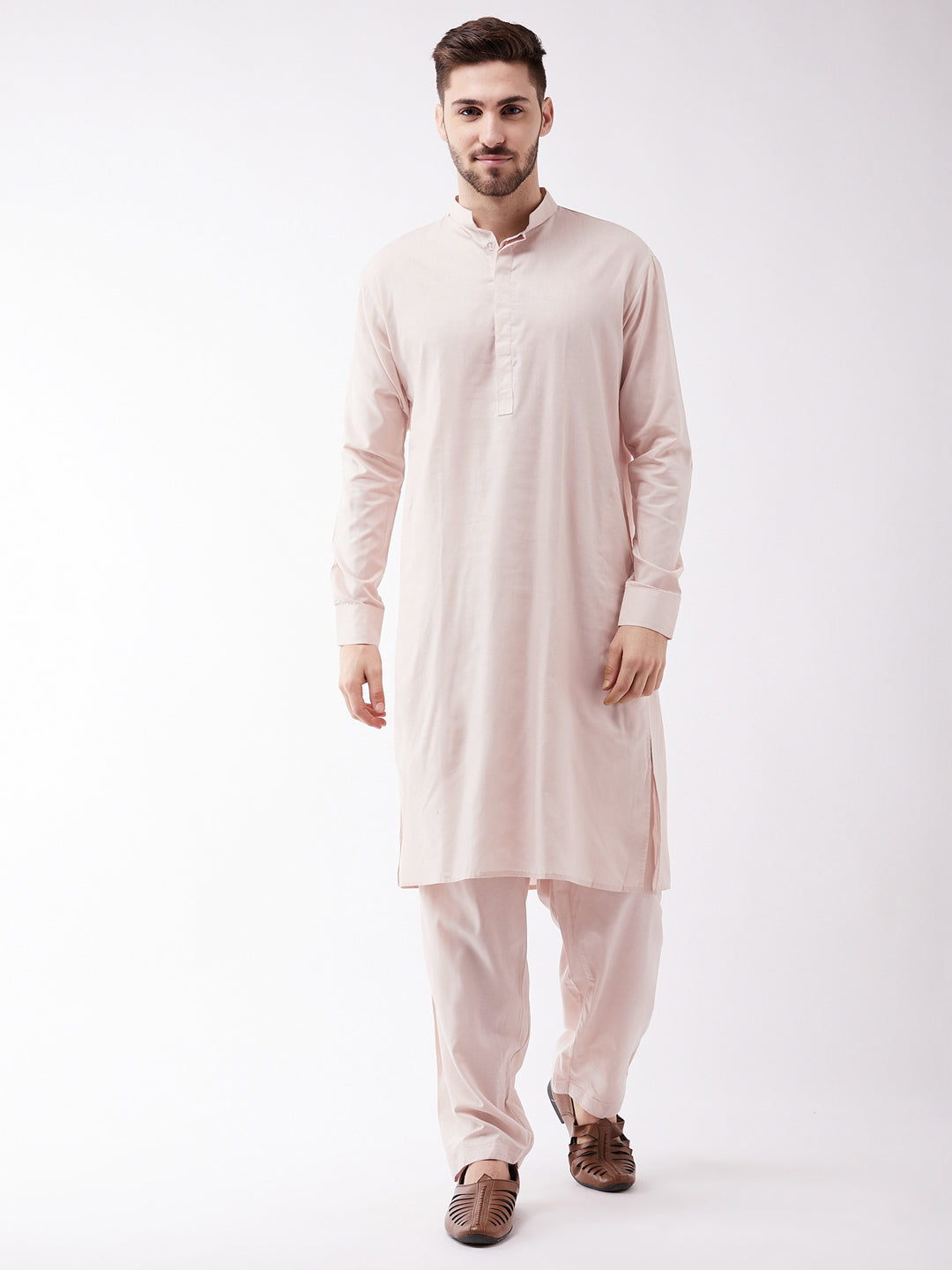 Cream kurta with solid pyjama.