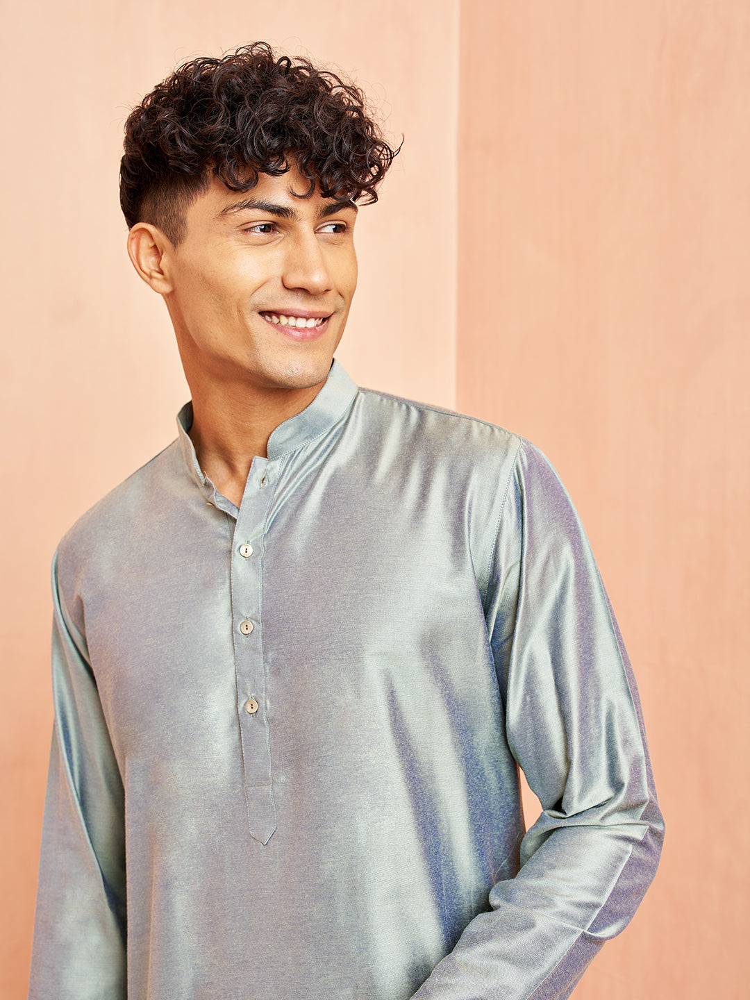 Experience traditional elegance with Sarvati's olive green viscose kurta churidar set. This classic ethnic ensemble features a premium kurta with mandarin collar and matching churidar, perfect for weddings and festive celebrations.