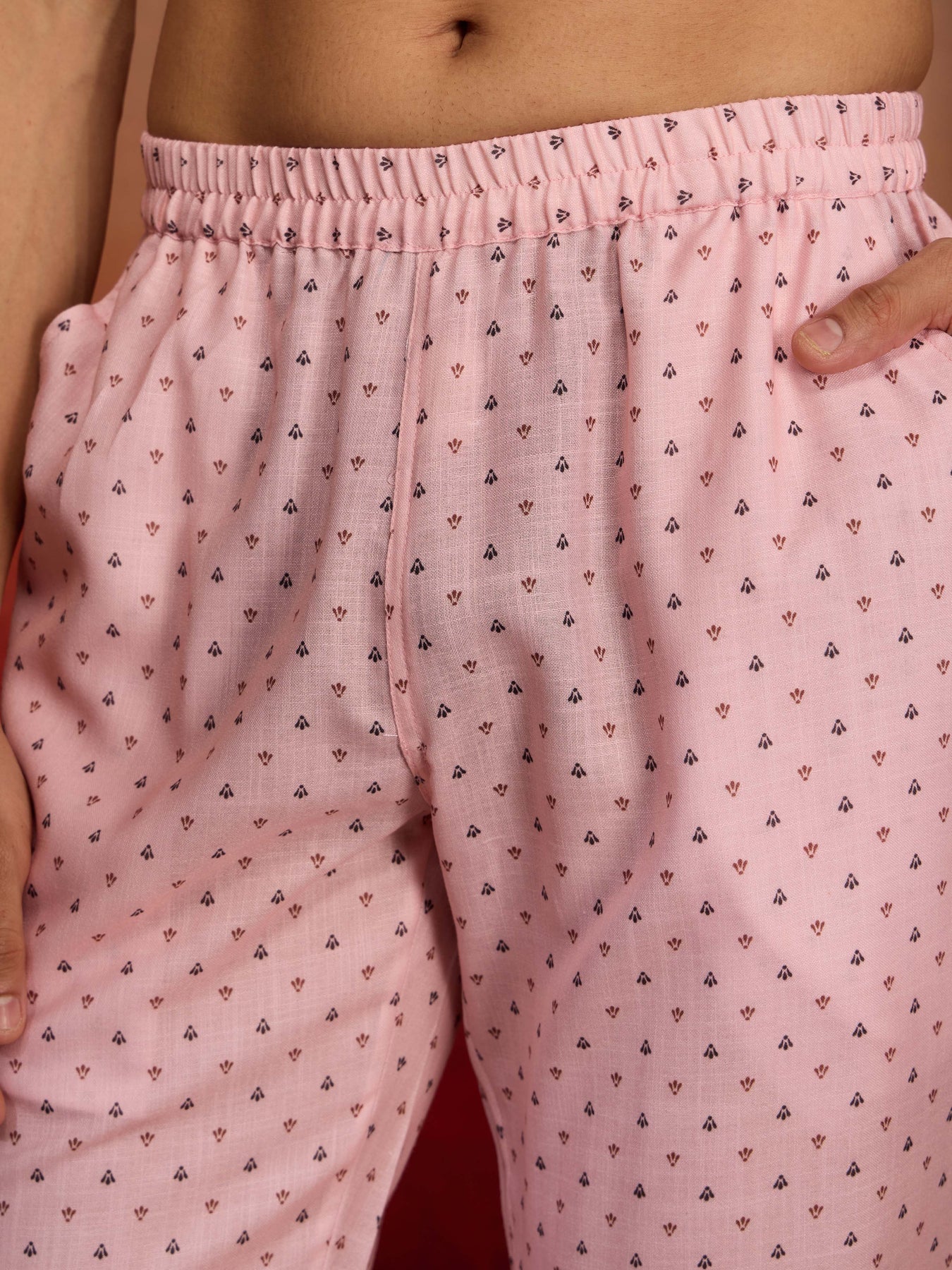 Experience versatile elegance with Sarvati peach cotton 3-piece Nehru jacket set featuring linen slub with digital geometric print. Includes thigh-length kurta with 2 inseam pockets, front open jacket with curved hemline, and comfortable full waist elasticated pant with inseam pockets. Perfect for casual wear, summer occasions, everyday casuals, and summer ease.