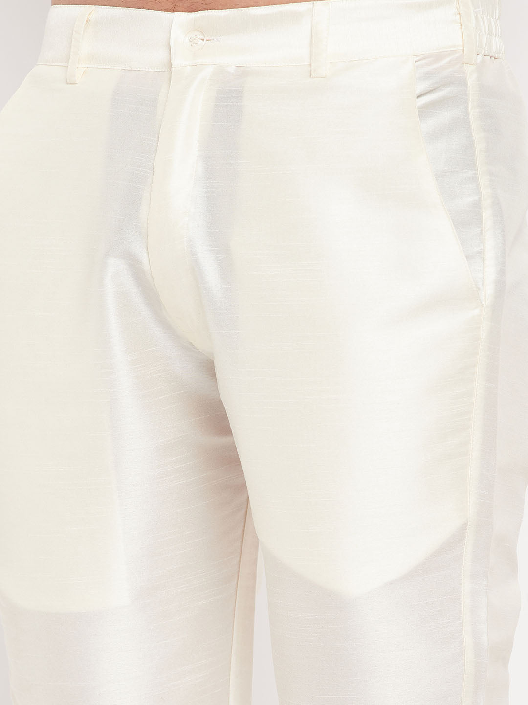 White solid cream color pant style pyjama has an elasticated waistband.