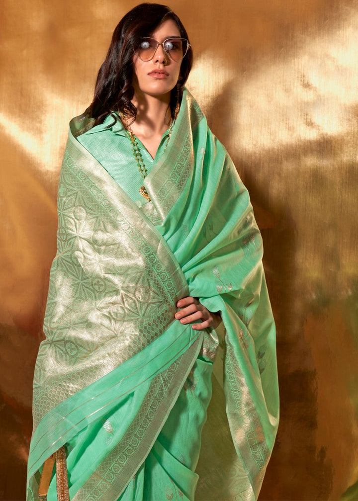 Spring Green Linen Silk Saree with Woven Zari Highlights