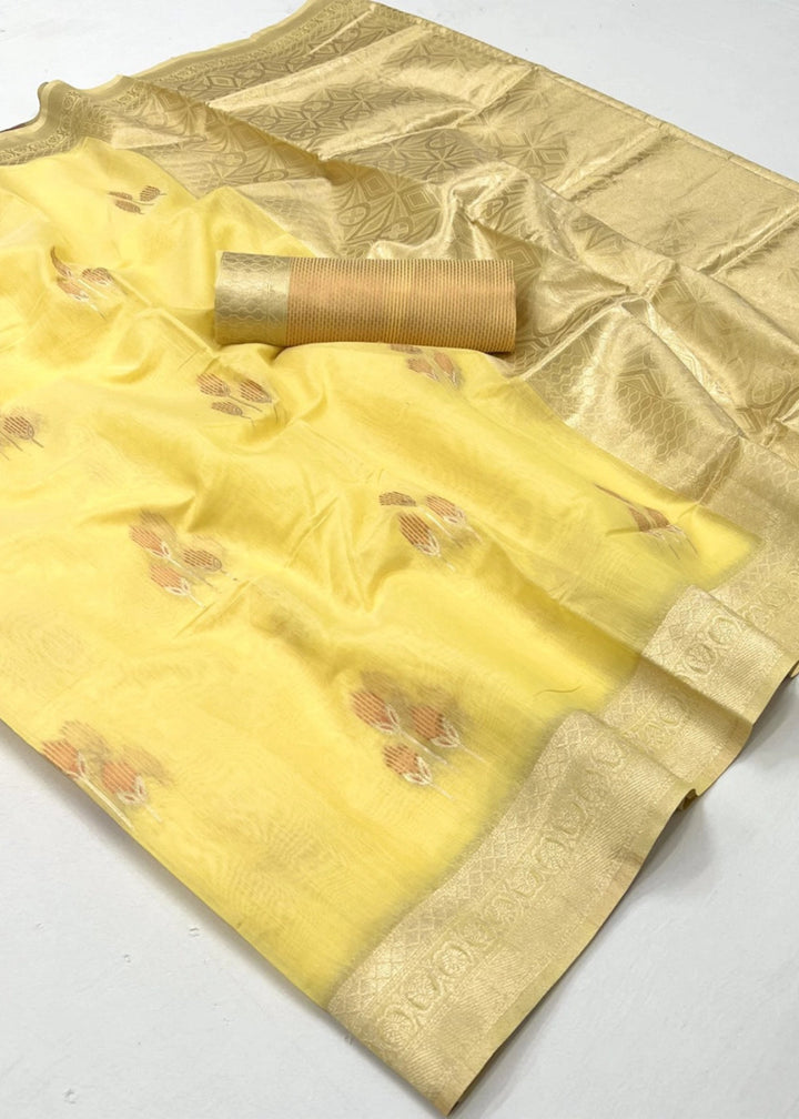 Titanium Yellow Linen Silk Saree with Woven Zari Highlights