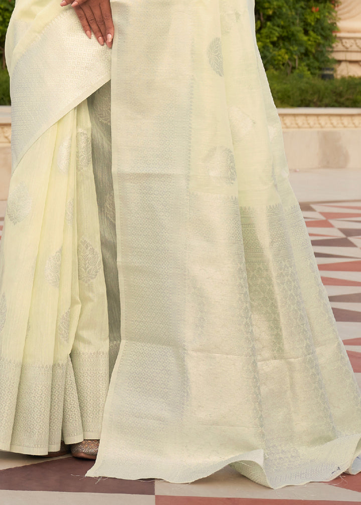 Zari Woven Cream White Linen Silk Saree – Perfect for Summer