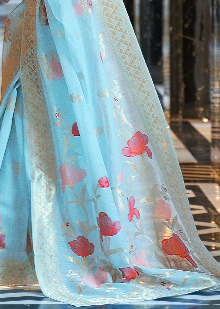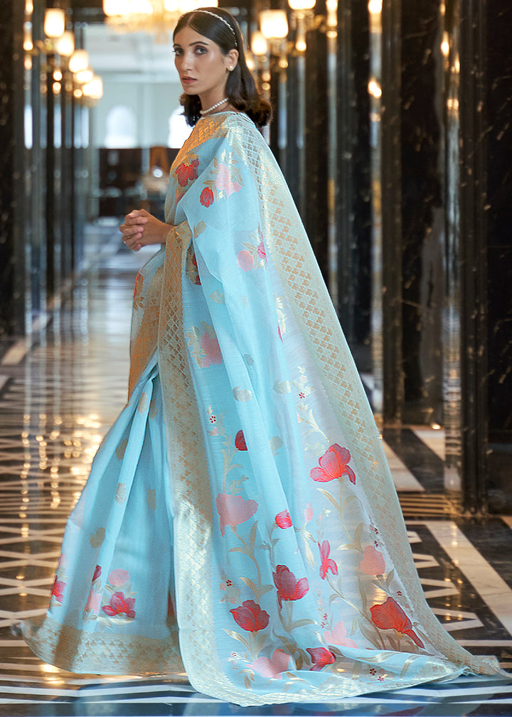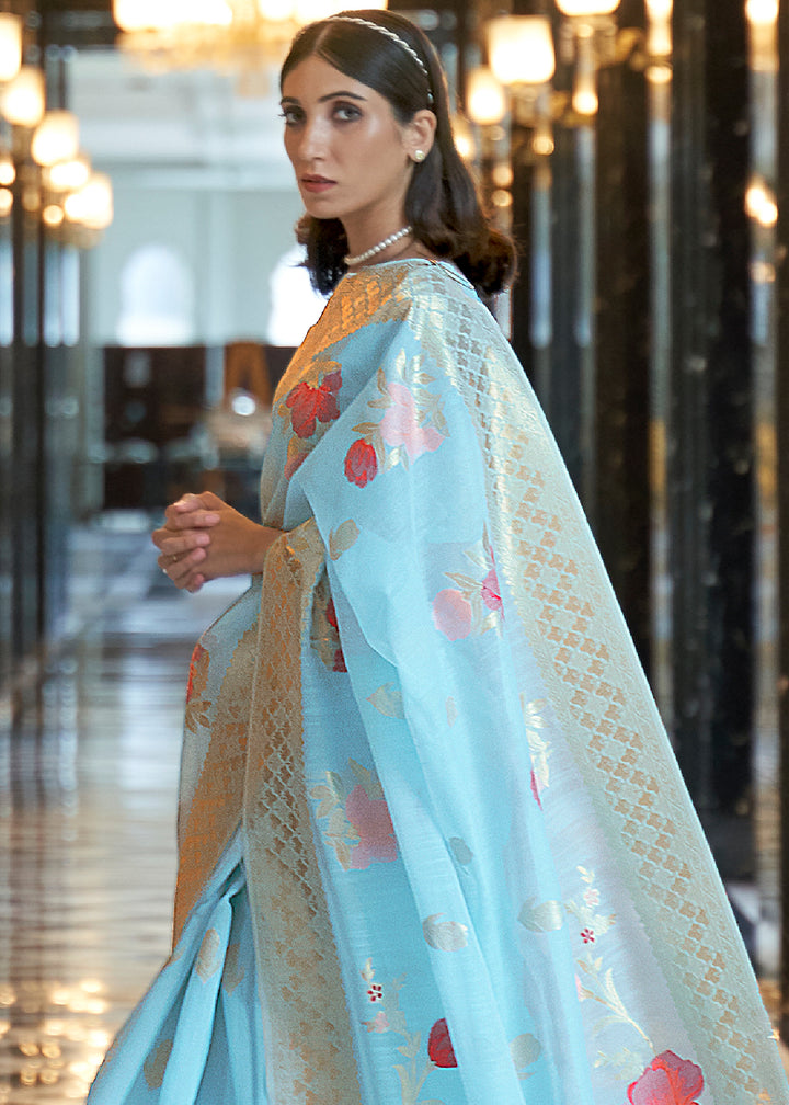 Zari Woven Sky Blue Linen Silk Saree – Perfect for Summer