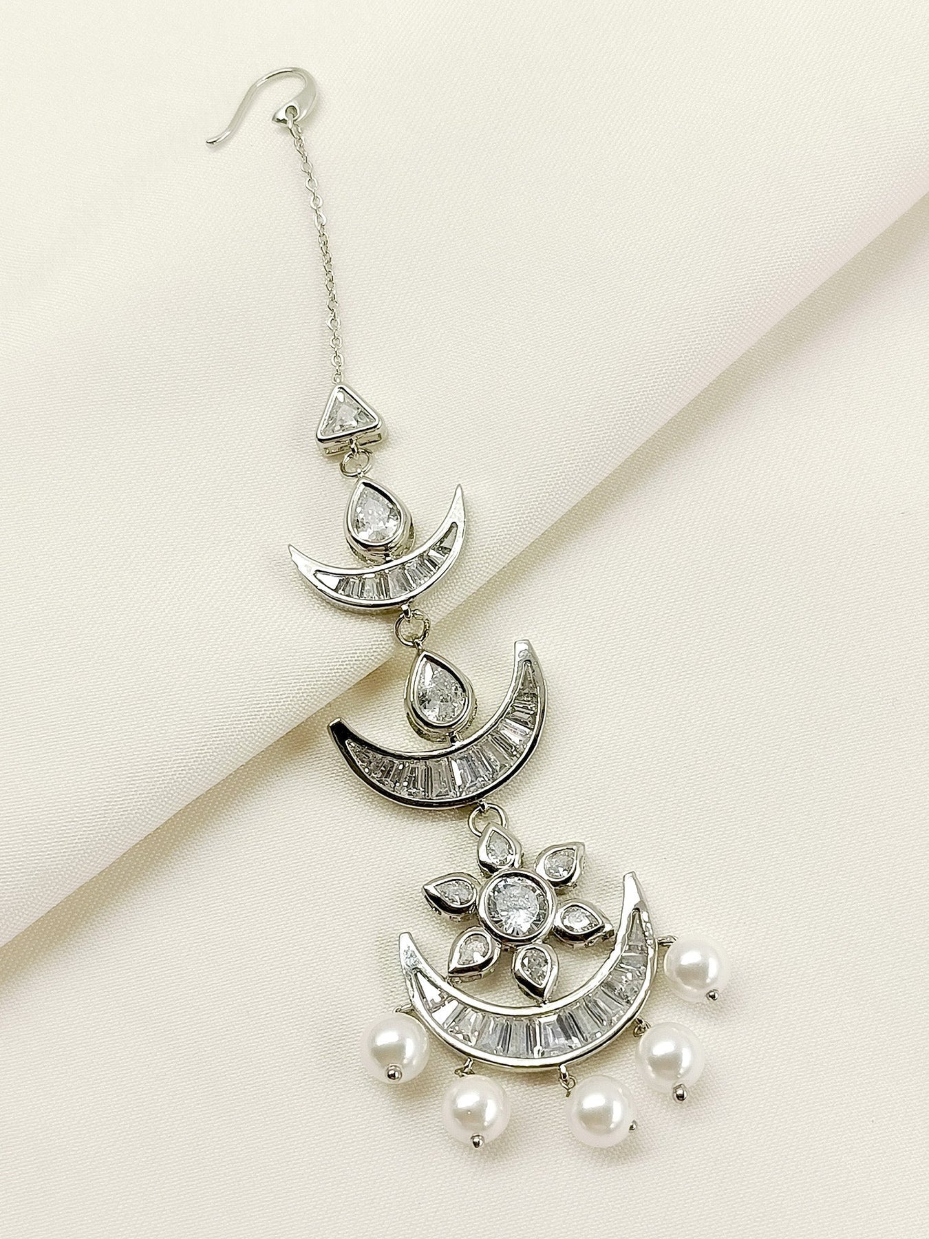 Introducing The American Diamond Teeka, A Delicate Piece Of Jewelry Featuring Elegant American Diamonds And Expertly Crafted With Silver Plated Brass Metal. Elevate Your Outfit With This Stunning Teeka That Exudes Timeless Beauty And Sophistication. Perfect For Any Occasion, This Teeka Is A Must-have For Any Jewelry Collection.