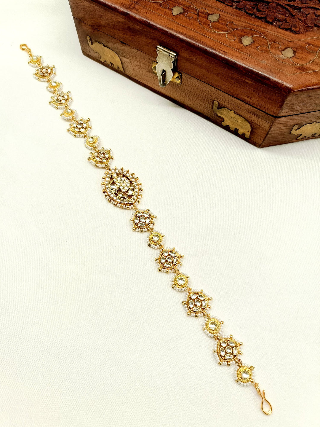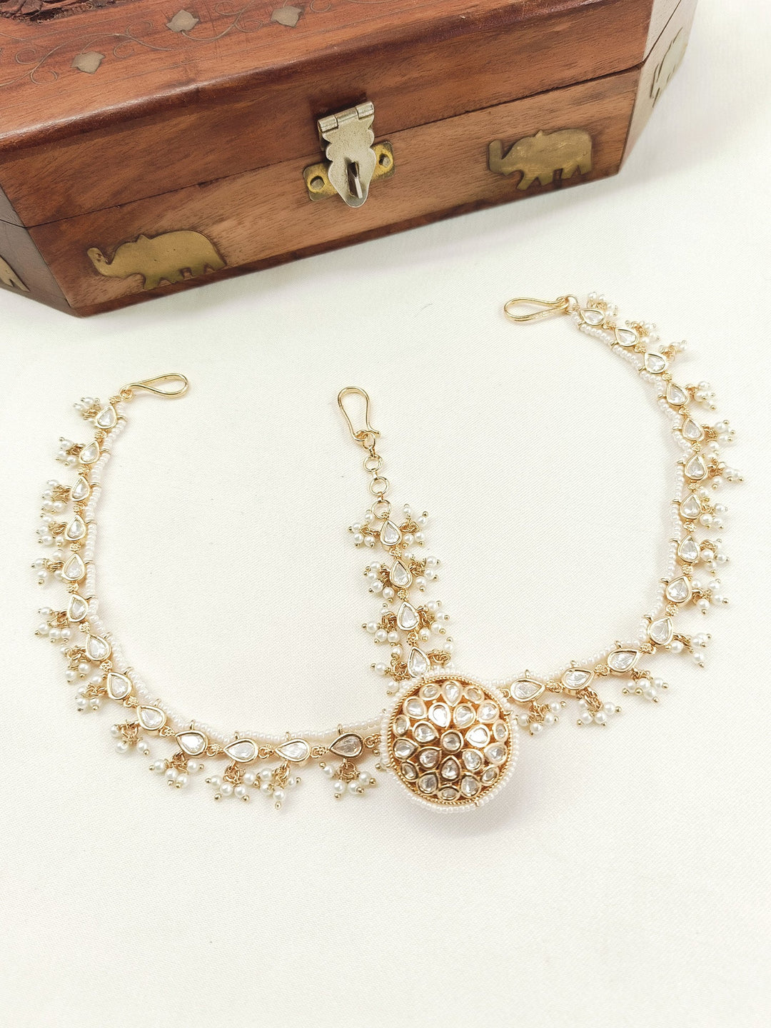 Shilpa White Pearls Gold Plated Kundan Sheesh Phool