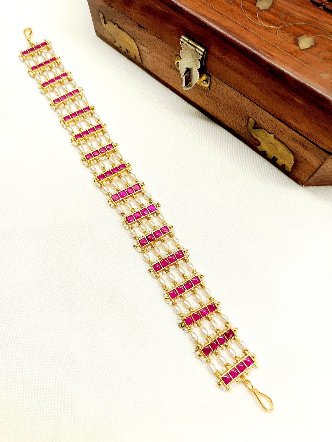 Mira Gold Plated Baby Pink Kundan Mathapatti