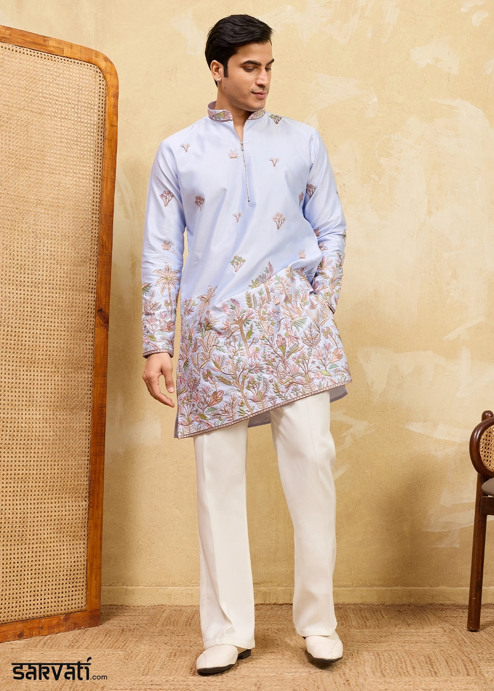 Light Purple Viscose Silk Kurta with Multi-Thread Embroidery
