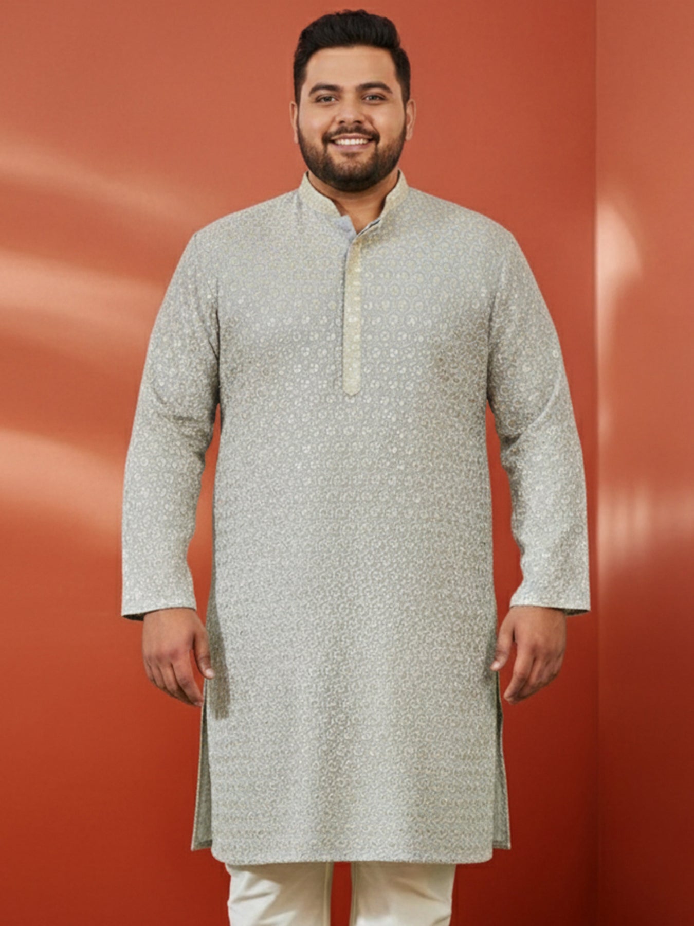 Elevate your festive wardrobe with Sarvati grey sequin kurta. Features exquisite hexagon shifli work with detailed thread embroidery. Premium rayon construction with traditional ethnic motifs for celebrations.