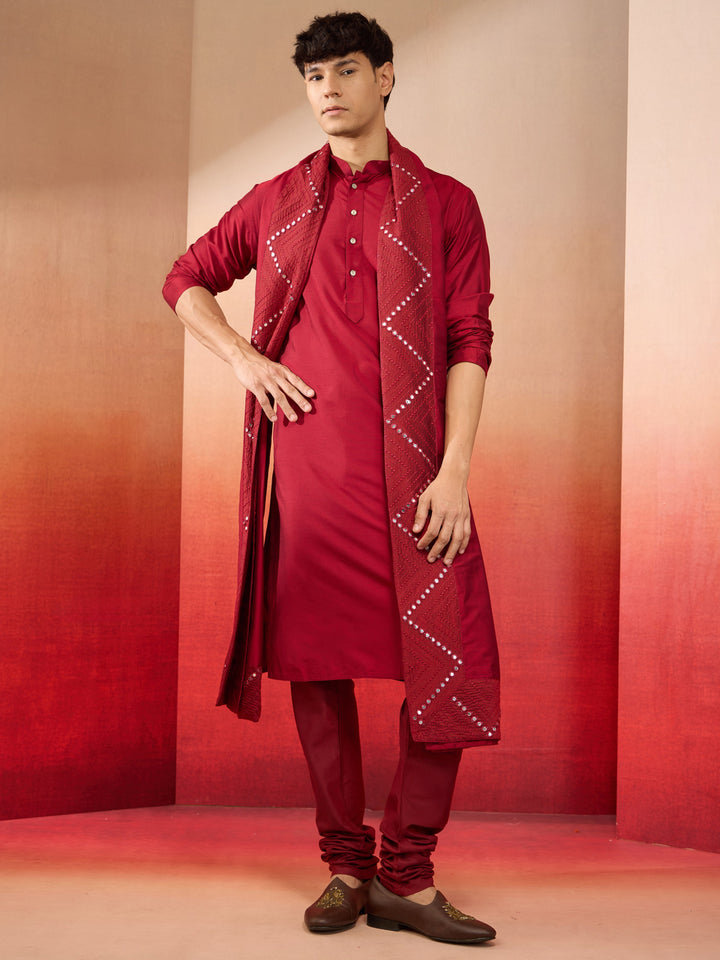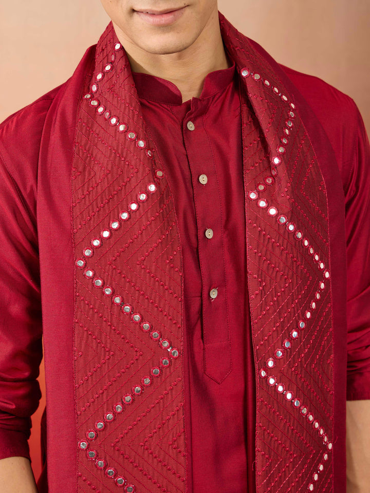 Enhance your festive style with Sarvati's maroon silk blend dupatta featuring viscose mirror work with solid fabric design and mirror fabric border on 4 sides. Free size for versatile draping possibilities. Perfect accessory for Navratri, Diwali, weddings, and festive celebrations across all regions requiring premium glamorous styling.