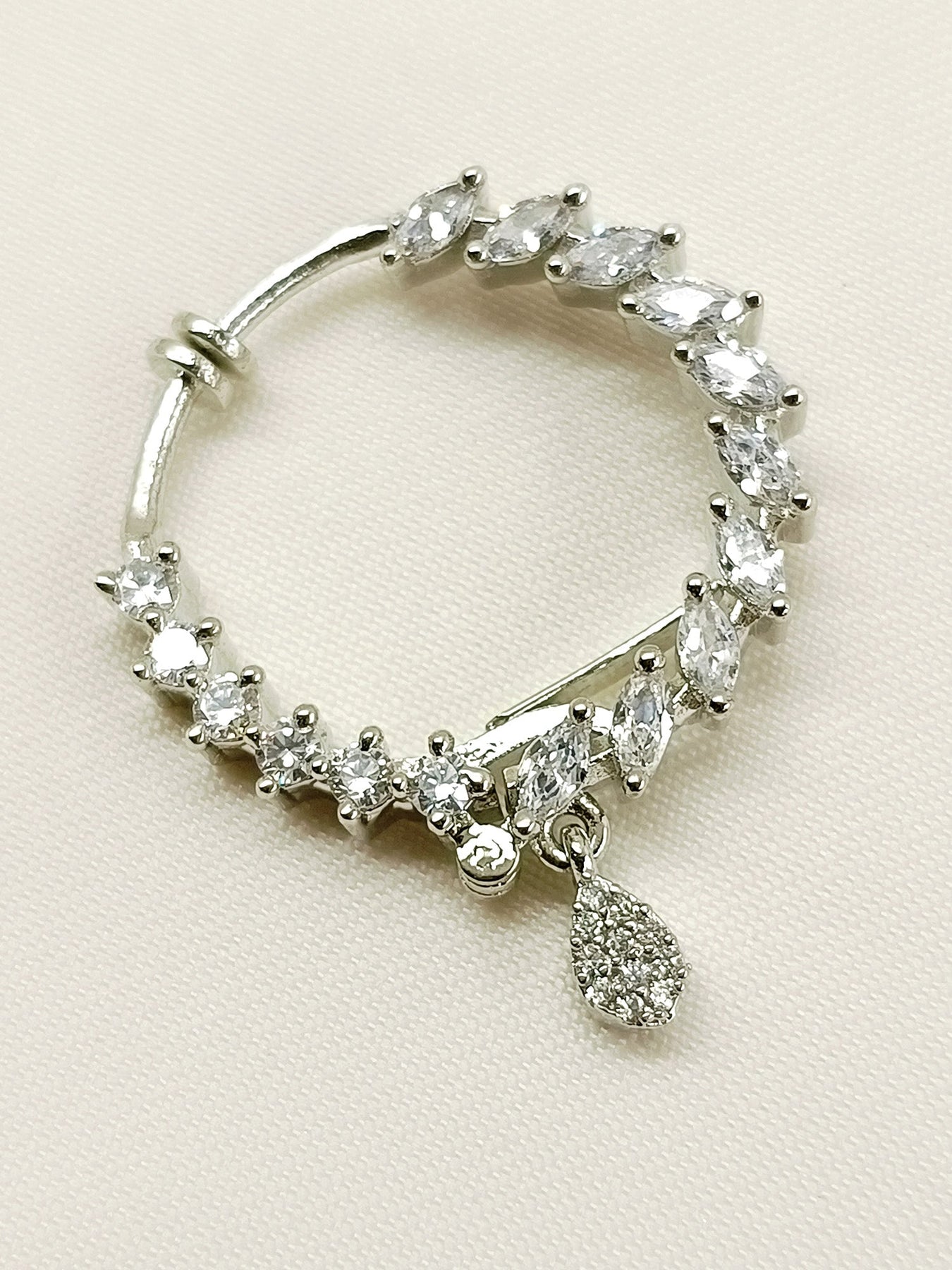 This Silver American Diamond Nosering Is Made From High-quality Brass Metal And Features Exquisite Silver Plating, Making It A Luxurious Addition To Any Jewelry Collection. The Shimmering American Diamonds Add A Touch Of Elegance And Sophistication, Making It The Perfect Accessory For Any Occasion. Elevate Your Style With This Stunning Nosering.