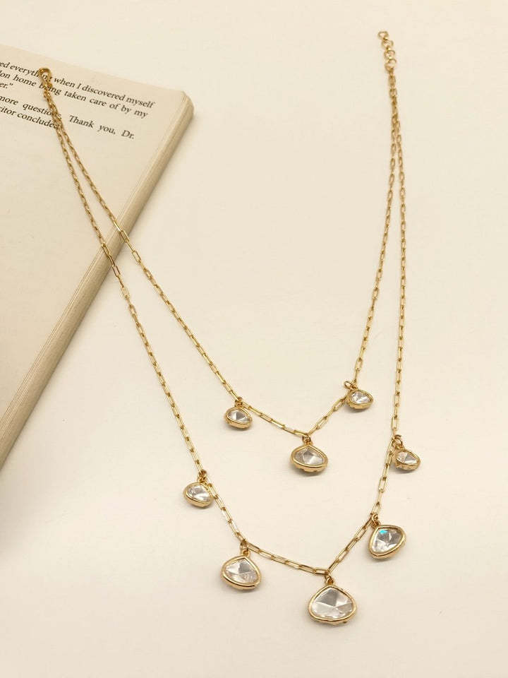 This Double Layered Kundan Pendant Set Is Perfect For Adding A Touch Of Elegance To Any Look. Crafted With Delicate Double Layerd Kundan And Gold Plated Brass Metal, It Provides A Delightful Finishing Touch. The Matching Stud Completes The Look To Perfection.