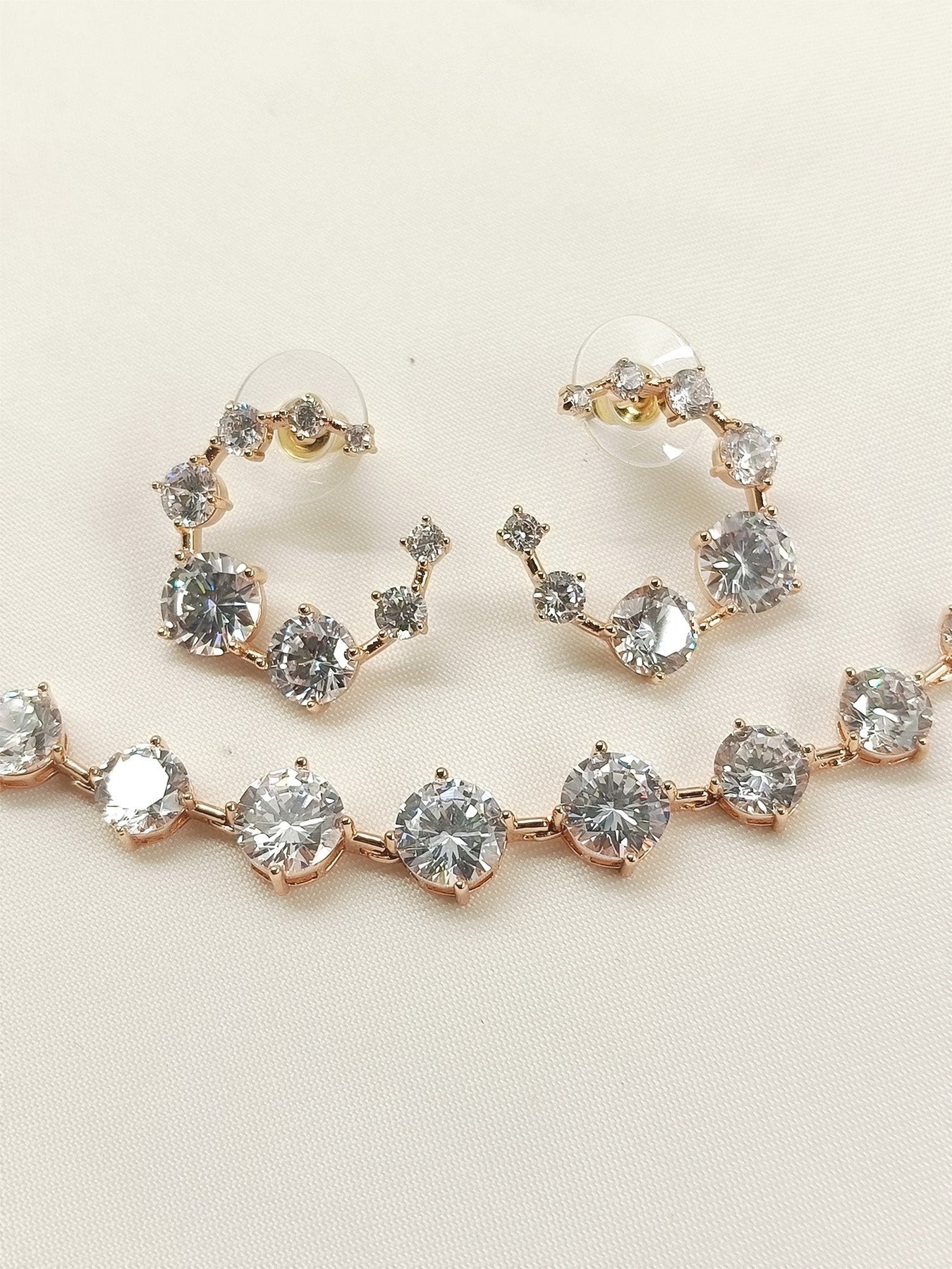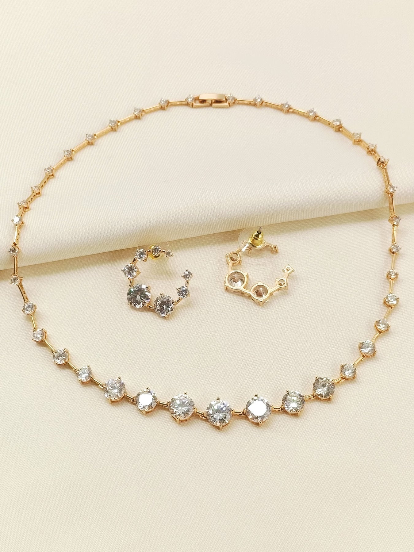 Elevate Your Elegance With This White American Diamond Necklace Set, Crafted From Durable Brass Metal With A Refined Gold Plating. Adorned With Sparkling American Diamonds And Semi-precious Stones, This Set Offers Both Timeless Beauty And Lasting Shine. Perfect For Special Occasions, It Combines Classic Design With Expert Craftsmanship To Complement Any Outfit With Subtle Sophistication.