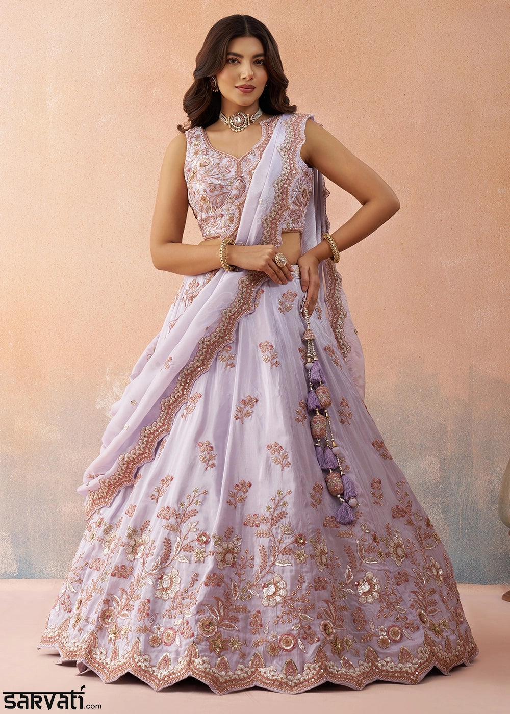 Light Purple Tissue Lehenga Choli with Floral & Sequin Embroidery