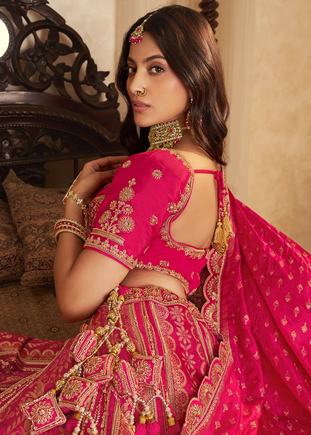 Magenta Pink Zari Woven Banarasi Silk Lehenga Choli with Traditional Motifs
