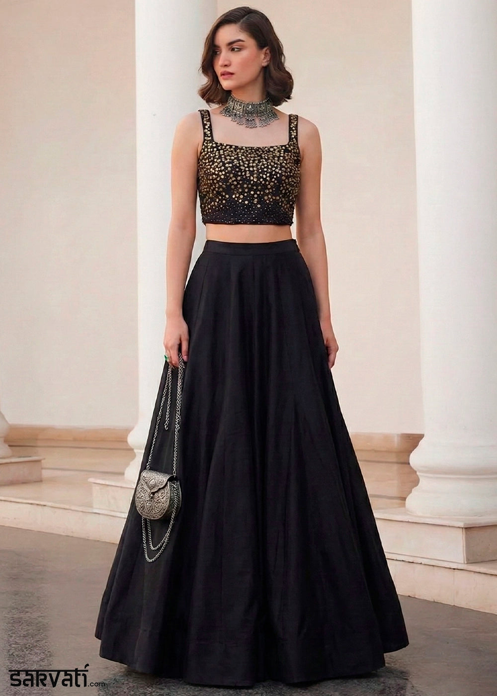 Midnight Black Soft Silk Lehenga Choli with Contemporary Styling