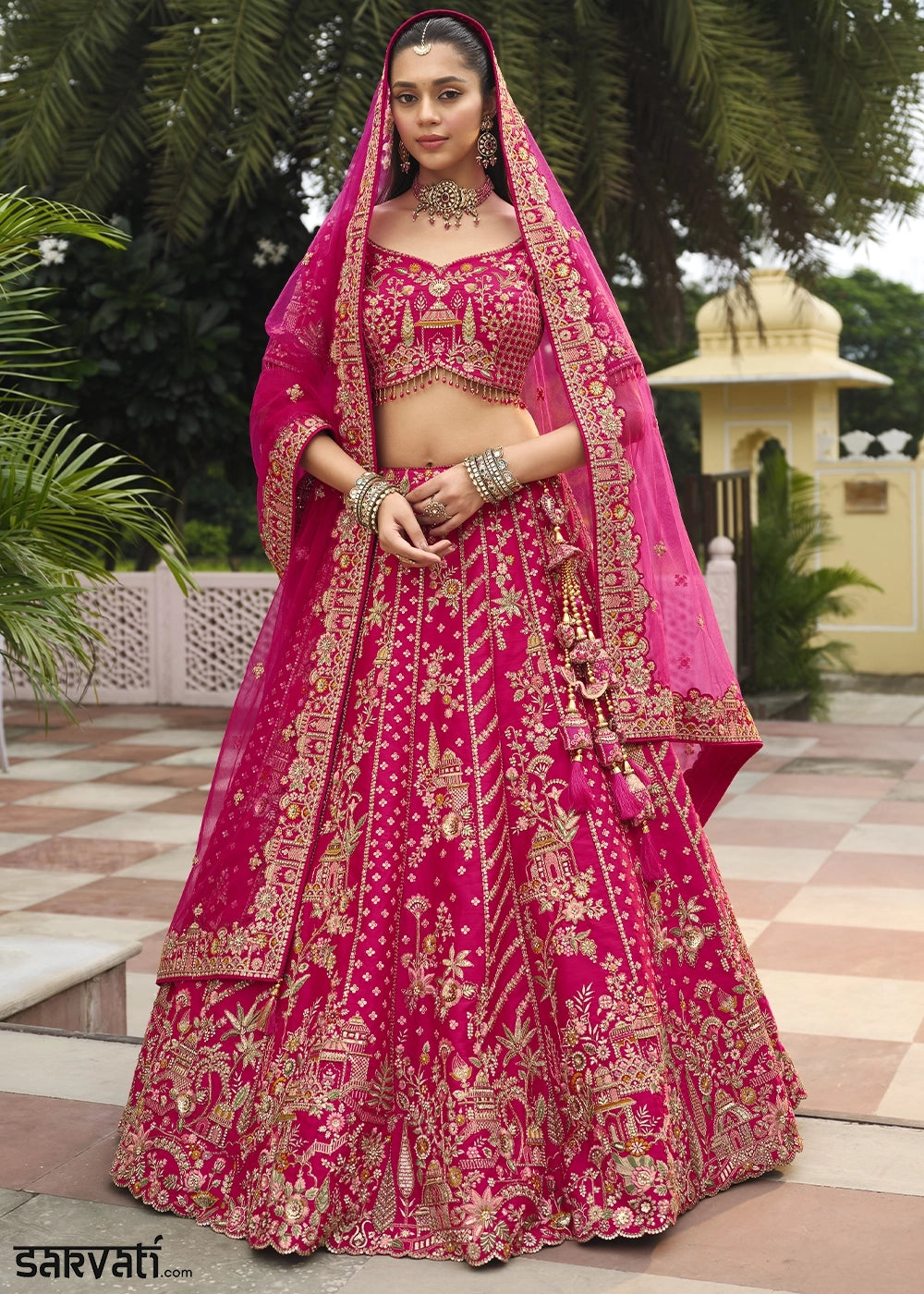 Hot Pink Banarasi Silk Bridal Lehenga with Exquisite Khatli & Hand Embroidery