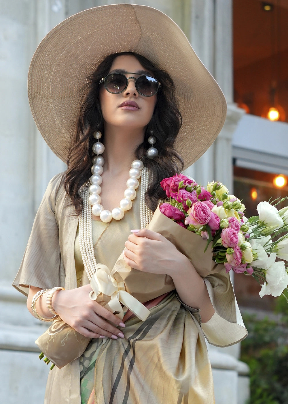 Beige Brown Silk Saree with Contemporary Abstract Print