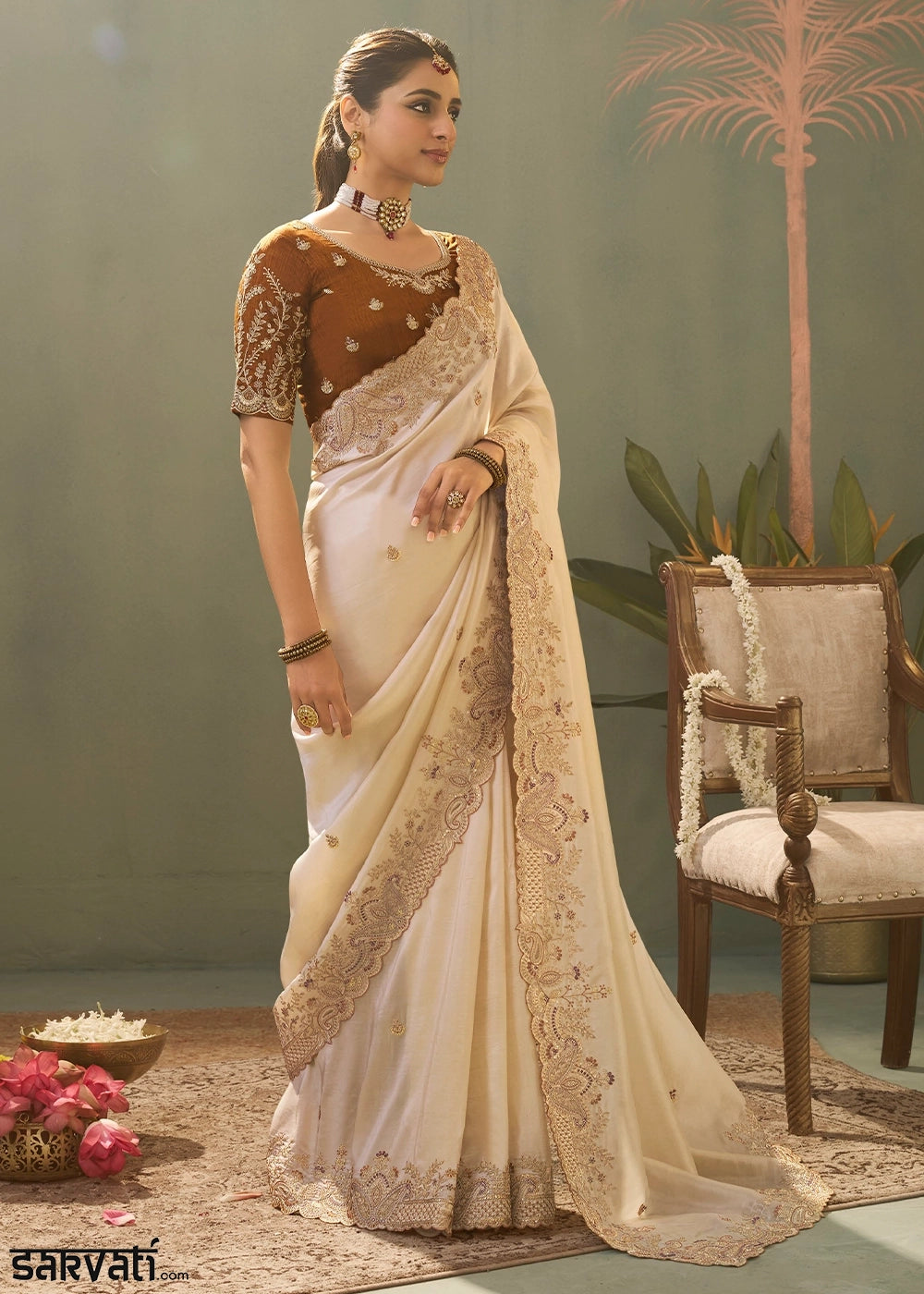 At Sarvati.com, we strive to present our designs with the utmost accuracy. However, actual product colors may vary slightly due to screen settings and lighting conditions during photography. Additionally, any accessories featured in the images are for styling purposes only and are not included unless explicitly mentioned.