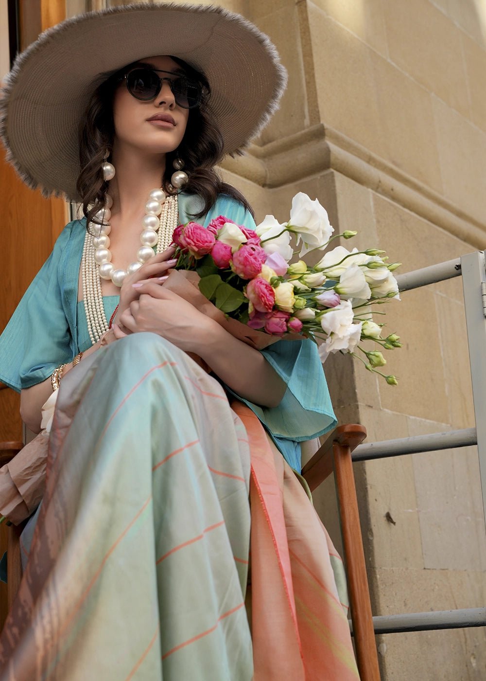 Tiffany Blue Tussar Silk Saree with Handwoven Detailing