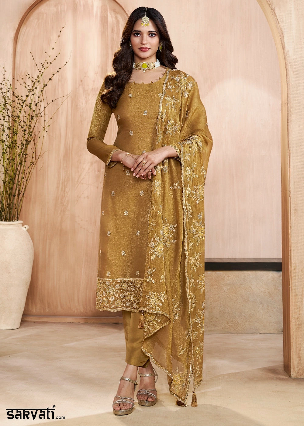 At Sarvati.com, we strive to present our designs with the utmost accuracy. However, actual product colors may vary slightly due to screen settings and lighting conditions during photography. Additionally, any accessories featured in the images are for styling purposes only and are not included unless explicitly mentioned.