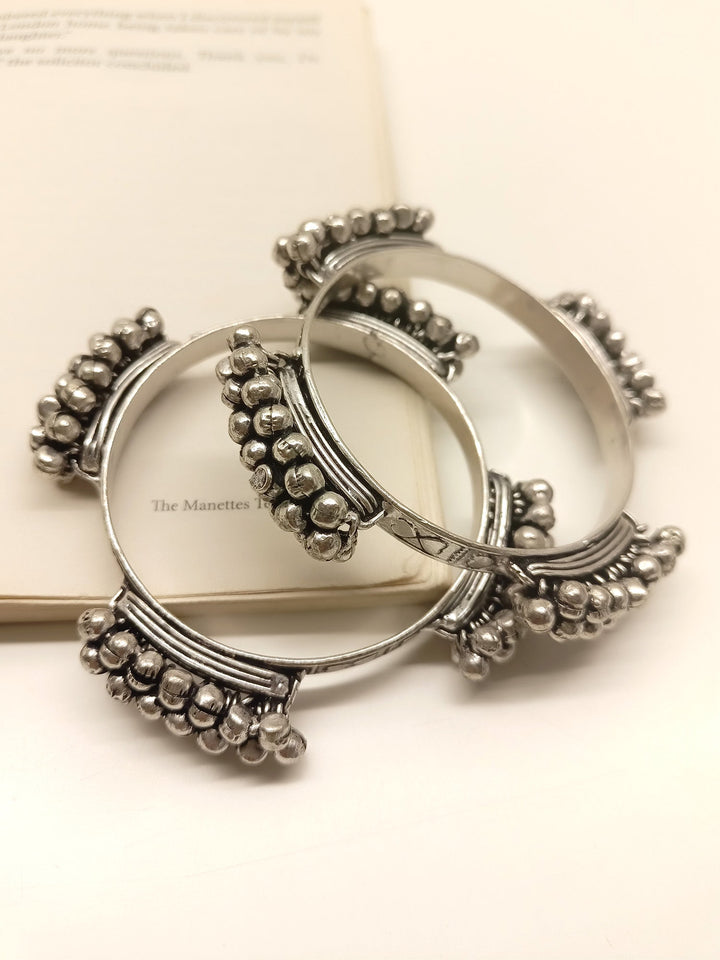 The Oxidized Silver Bangle Is The Perfect Accessory For Any Traditional Occasion. Crafted With Oxidized Silver Plated Brass Metal And Finished With Ghungru, This Bangle Will Add A Unique Flourish To Your Look. Its Strong Construction Allows It To Be Durable And Timeless.