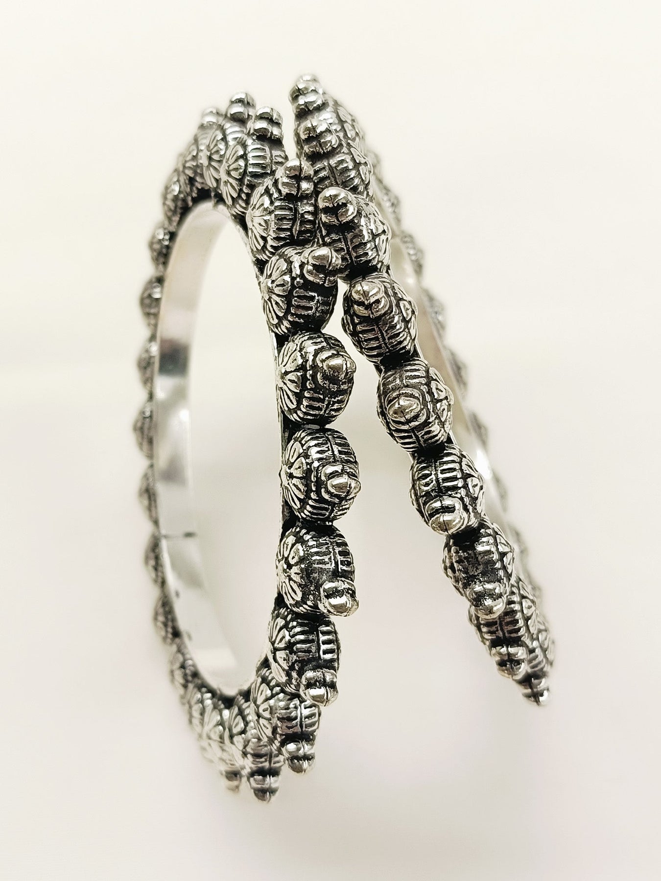 This Plain Oxidized Bangle Is Crafted From Oxidized Silver-plated Brass, Offering A Durable Yet Stylish Accessory. Its Oxidized Finish Provides A Vintage Appeal, Making It A Versatile Piece That Complements Both Casual And Formal Attire. Designed For Those Who Appreciate Subtle Elegance With A Touch Of Antiquity, This Bangle Adds Character To Any Jewelry Collection.