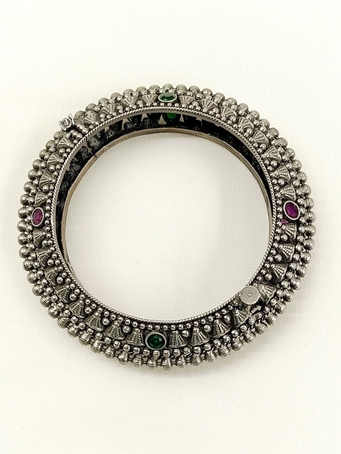 This R&G Oxidized Kada Features A Durable Brass Base With Oxidized Silver Plating, Offering A Vintage-inspired Look That Complements Any Attire. Adorned With Carefully Selected Semi-precious Stones, It Combines Traditional Craftsmanship With Elegant Design, Making It A Refined Accessory For Both Casual And Formal Occasions.