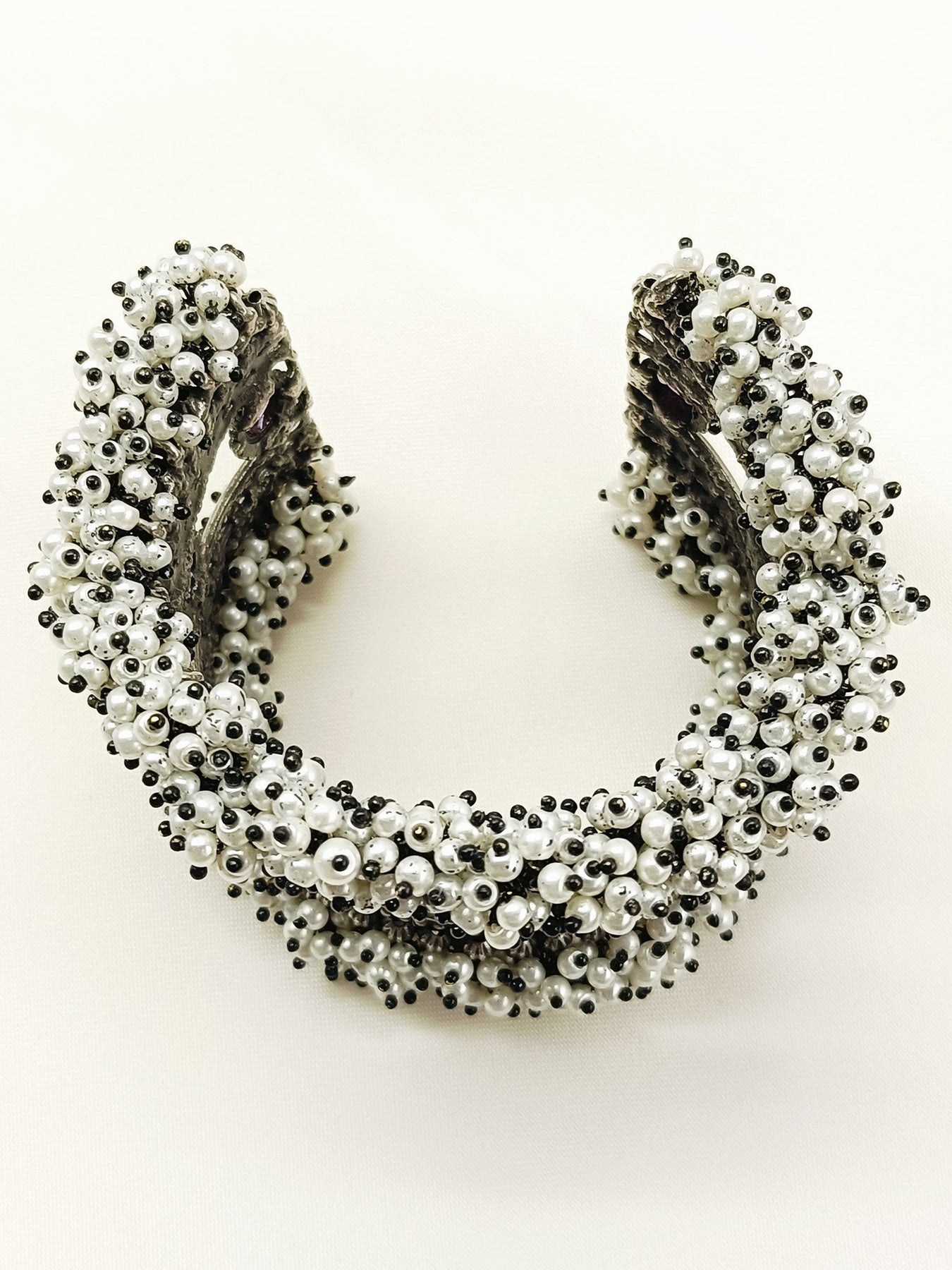 This Ruby Oxidized Bracelet Features A Sophisticated Blend Of Oxidized Silver-plated Brass And Lustrous Pearls, Accented With A Semi-precious Stone. Expertly Crafted, It Offers A Unique Vintage Appeal While Ensuring Durability. Ideal For Adding An Elegant, Timeless Touch To Any Ensemble.