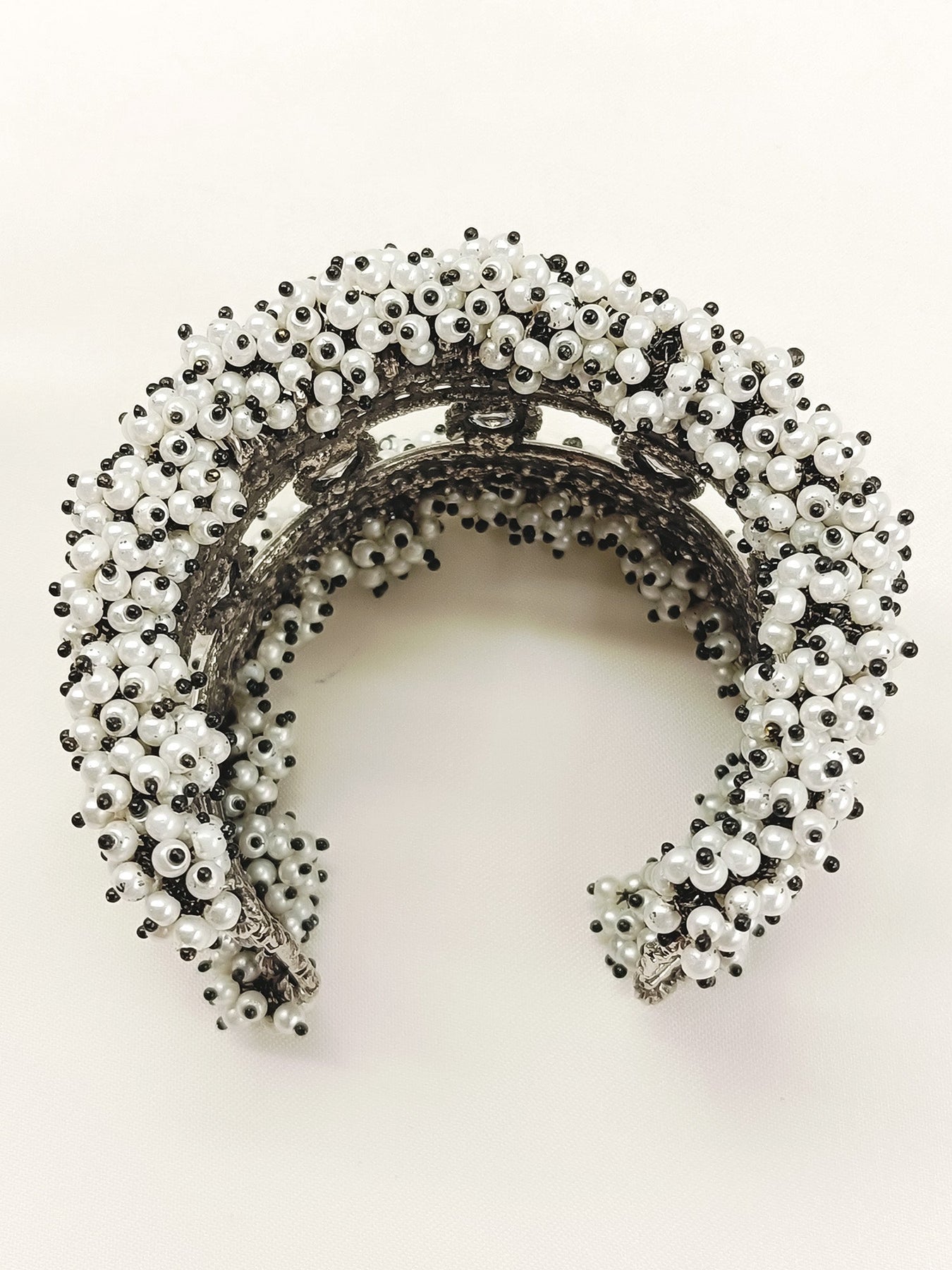 This White Oxidized Bracelet Showcases Masterful Craftsmanship With Its Oxidized Silver-plated Brass Foundation, Creating A Refined Darkened Patina That Enhances Visual Depth. The Design Integrates Lustrous Pearls And Semi-precious Stones In A Harmonious Composition, Where The Oxidized Finish Serves As A Sophisticated Backdrop To Highlight Each Gemstone's Natural Radiance. The Combination Of Materials Delivers Both Durability And Aesthetic Appeal, Making This Piece A Versatile Addition To Any Discerning Jewelry Wardrobe. Perfect For Layering Or Wearing As A Standalone Statement Piece.