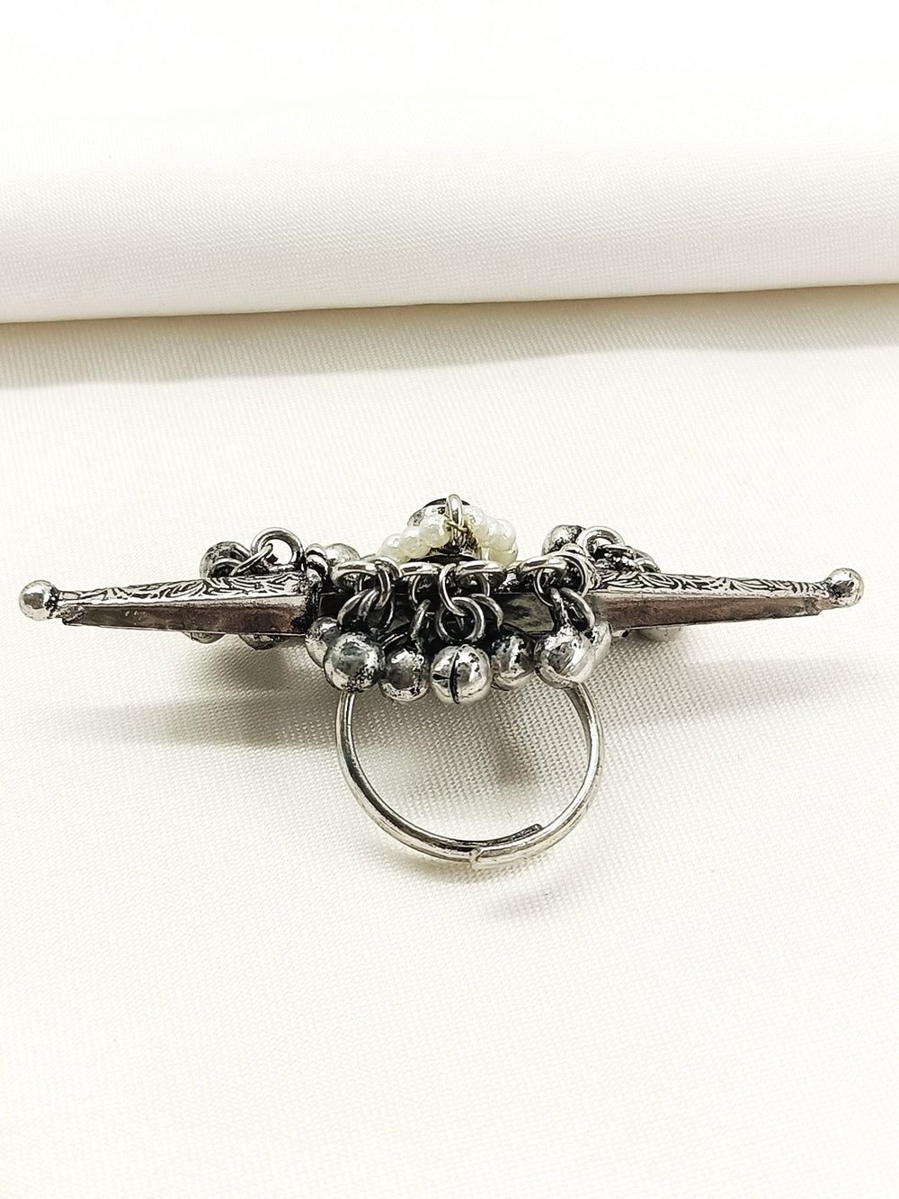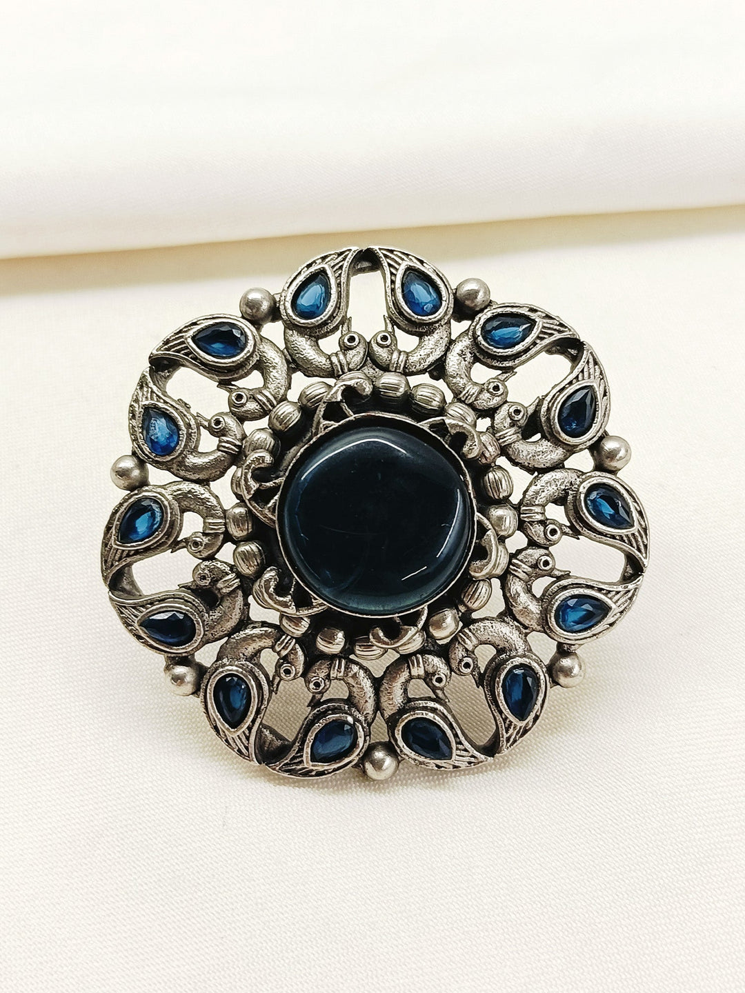 Dhatrananda Navy Blue Oxidized Finger Ring