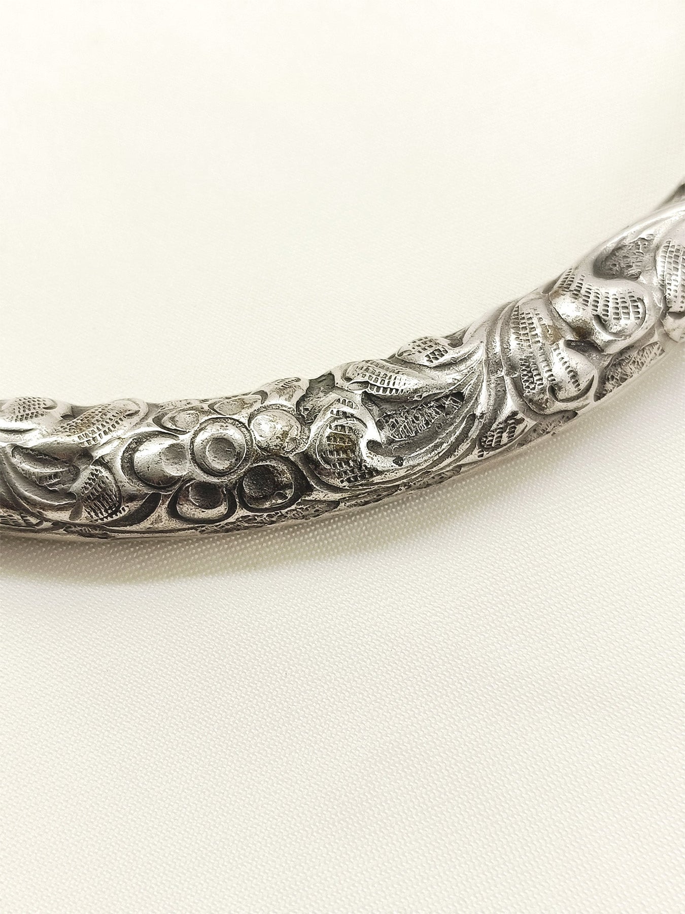 This Maroon Oxidized Neckpiece Features A Distinctive Oxidized Silver Plating On Durable Brass Metal, Offering A Striking Vintage Aesthetic. Expertly Crafted, It Combines Sturdy Materials With A Unique Darkened Finish That Enhances Intricate Detailing, Making It An Ideal Accessory For Adding Refined Character And Timeless Appeal To Any Outfit.