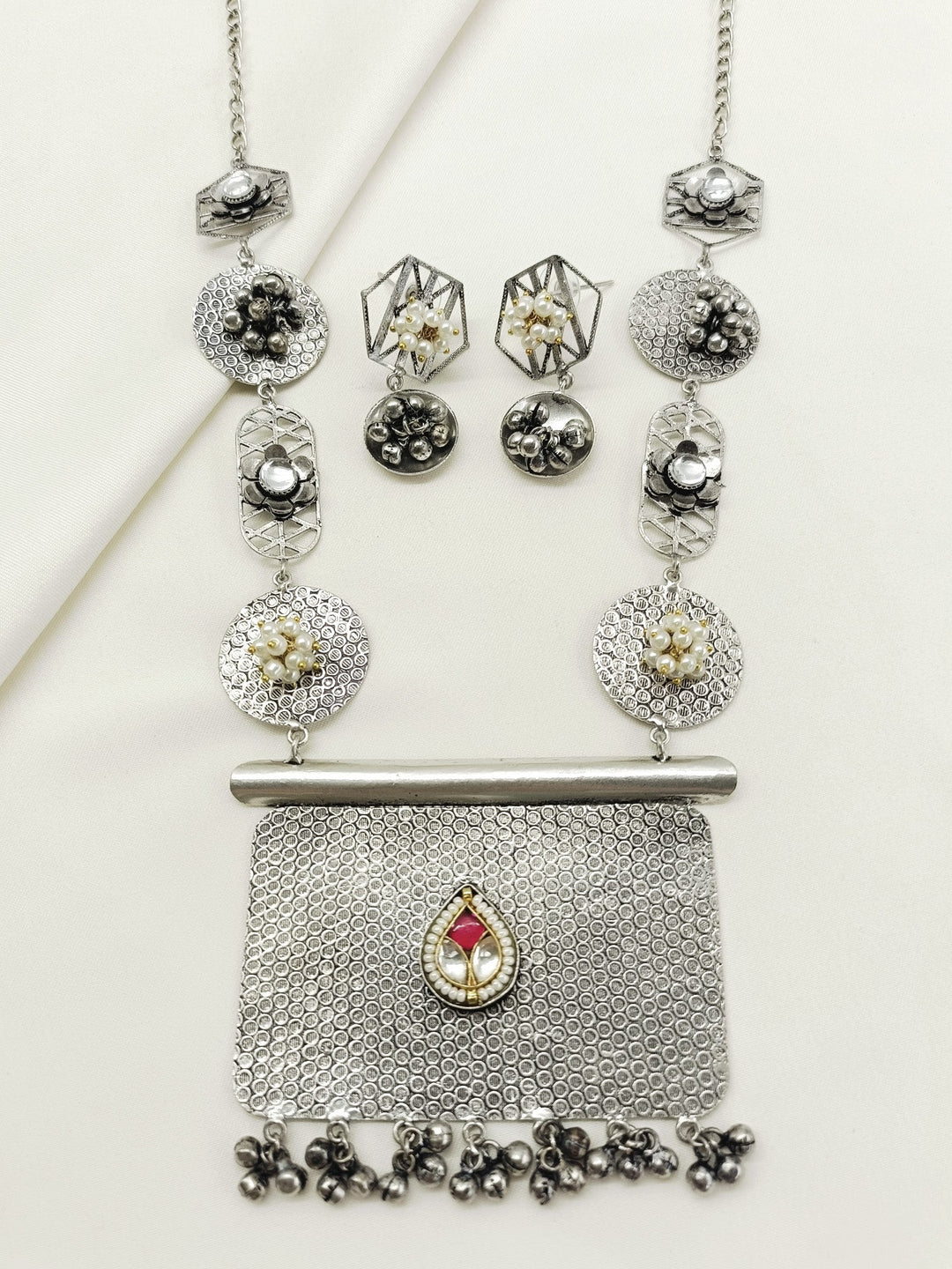 Qiratul White Oxidized Necklace Set