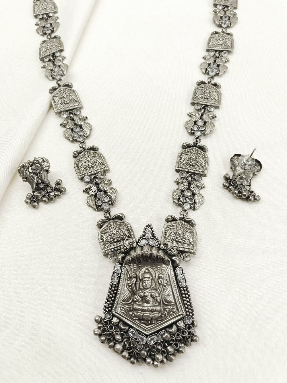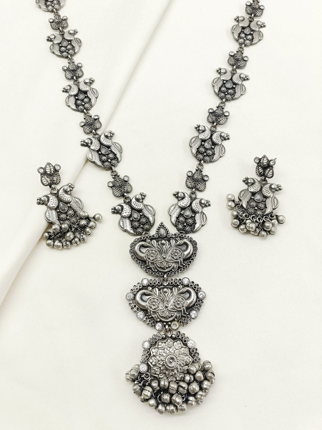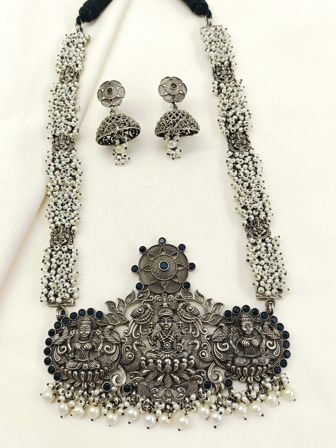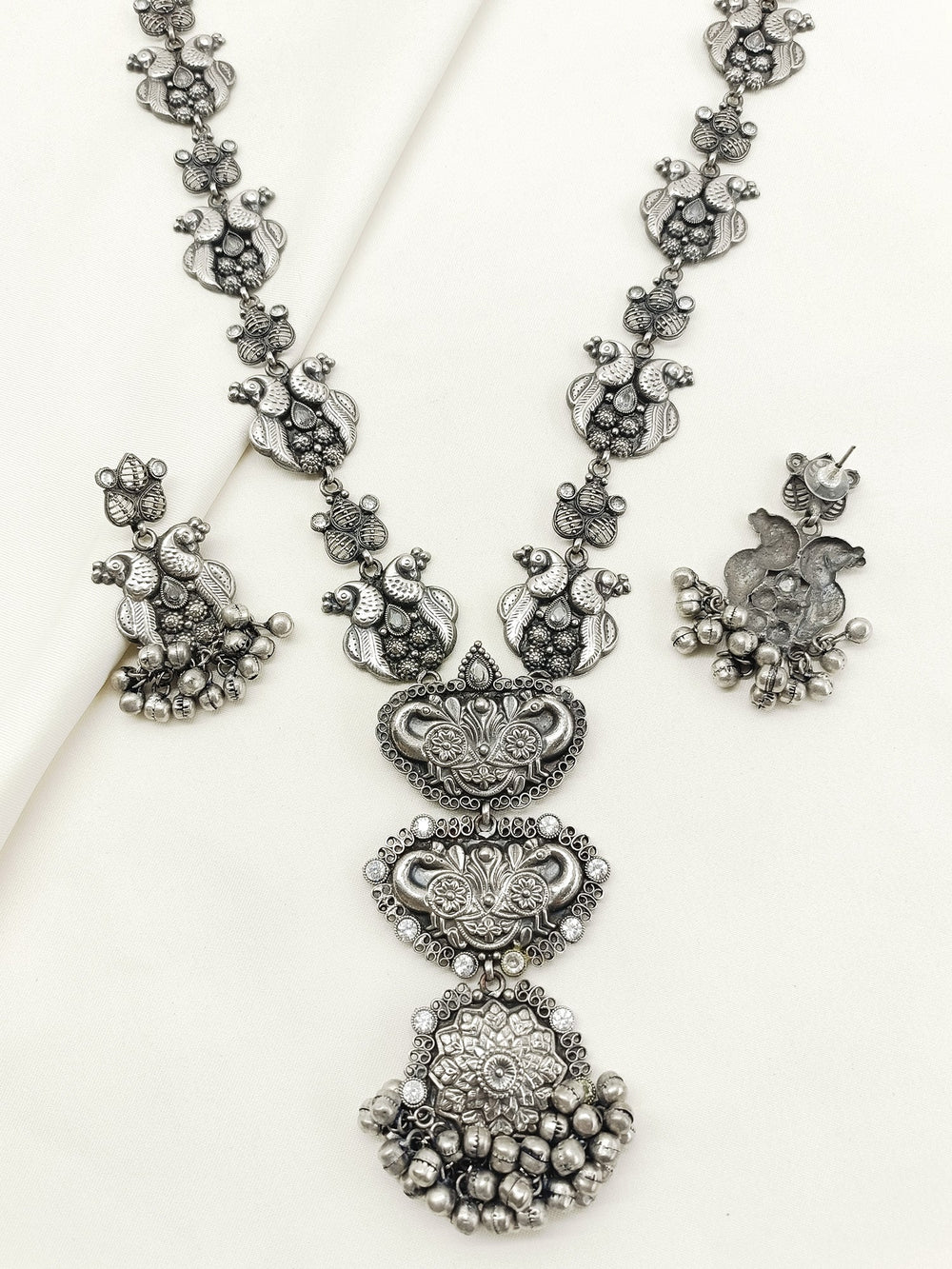 Qandeel White Oxidized Necklace Set