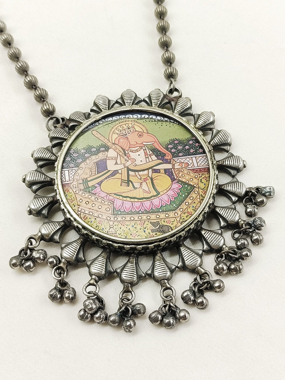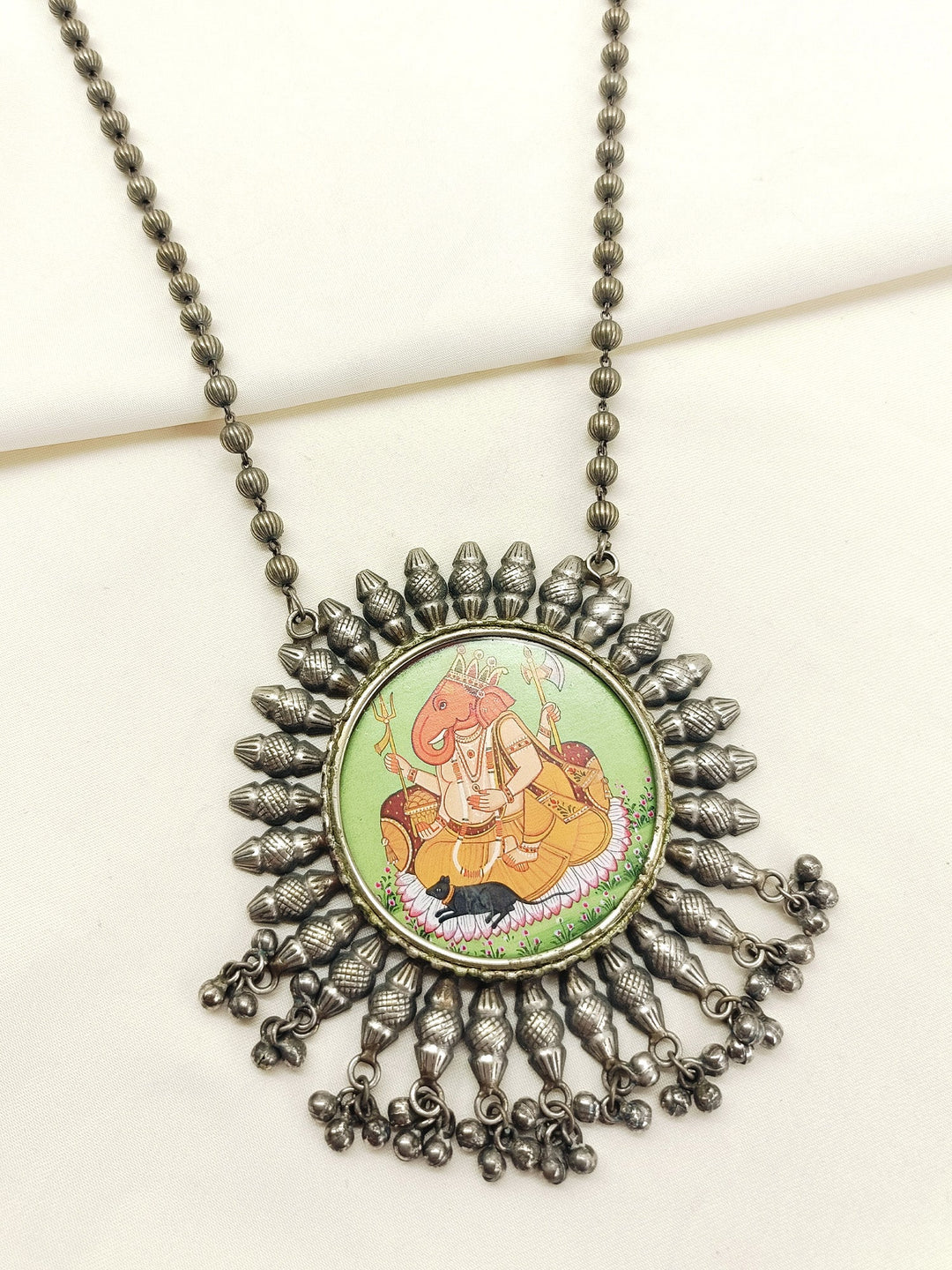 Qismat Grey Oxidized Pendant Set