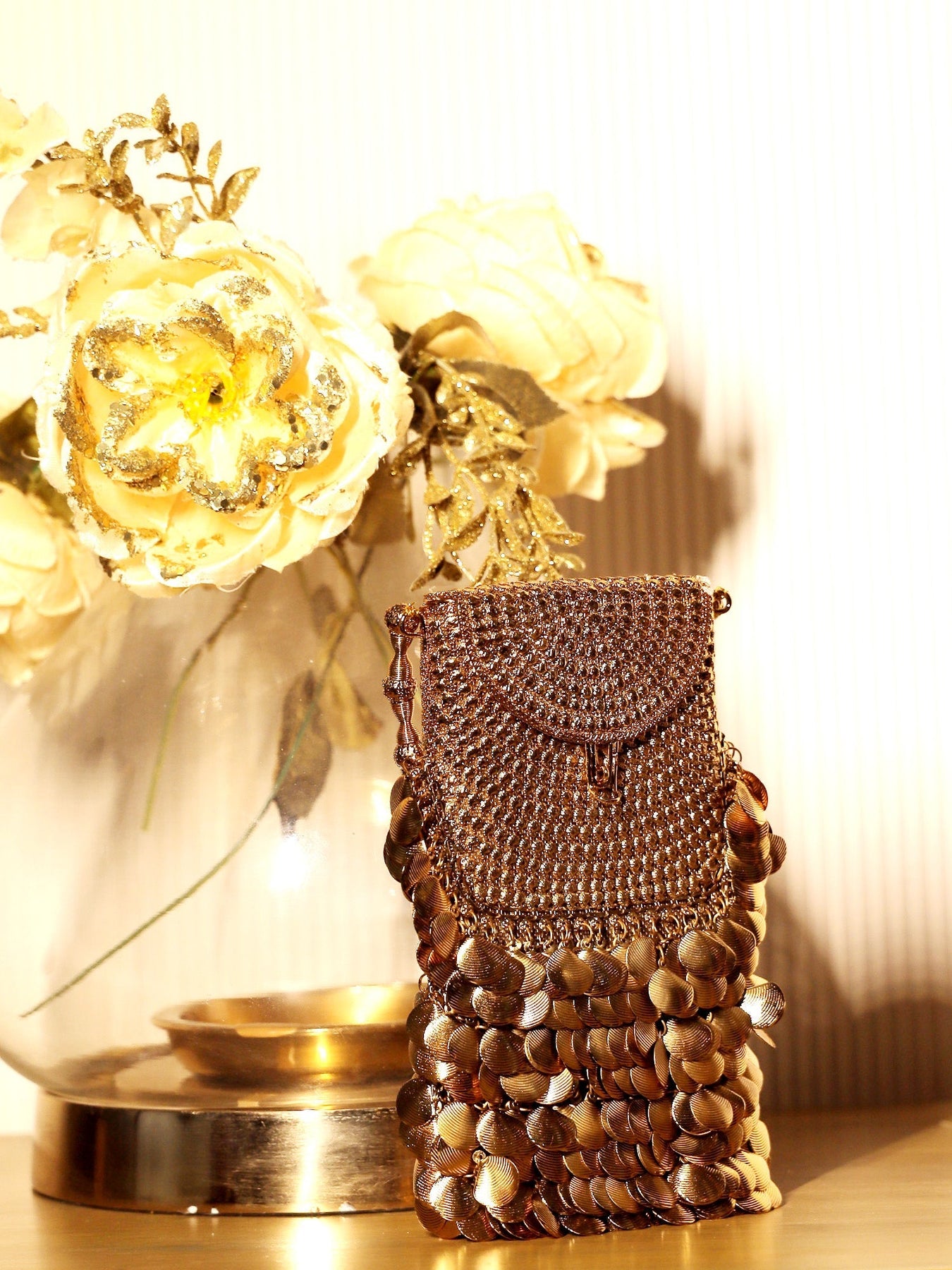 The Golden Mobile Pouch Is An Elegant And Convenient Storage Solution For Your Mobile Device. Crafted With Gold Plated Brass Metal And A Beautiful Pearl Hanging, This Pouch Is Lightweight And Easy To Carry, Providing Effortless Protection For Your Phone.