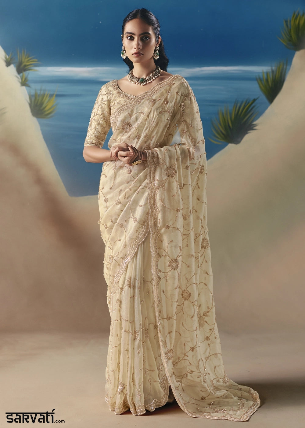 At Sarvati.com, we strive to present our designs with the utmost accuracy. However, actual product colors may vary slightly due to screen settings and lighting conditions during photography. Additionally, any accessories featured in the images are for styling purposes only and are not included unless explicitly mentioned.