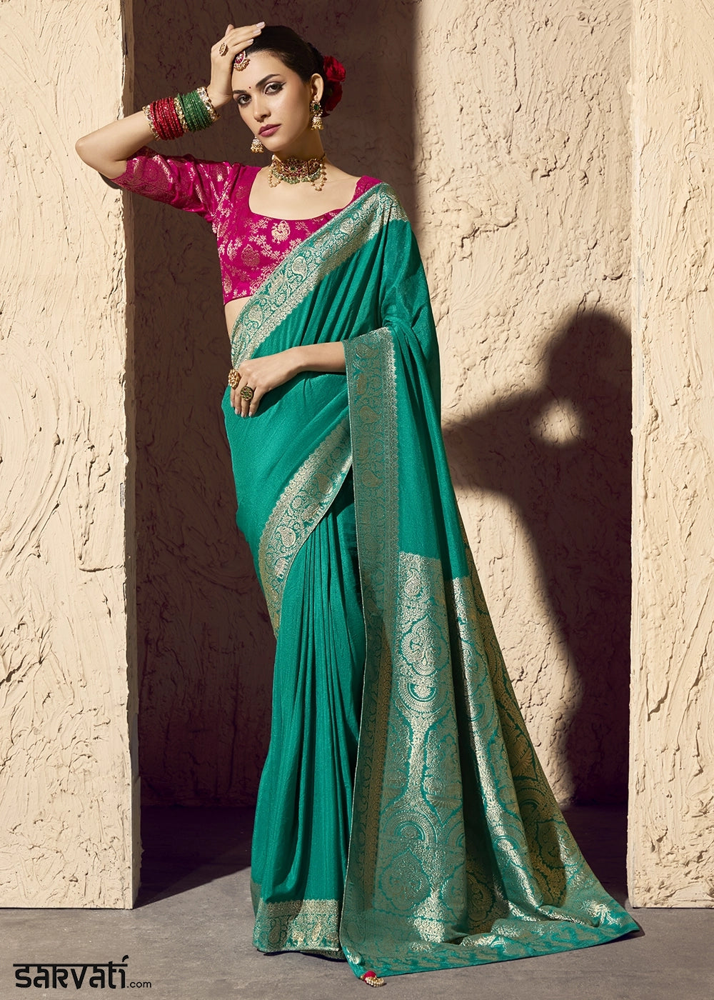 Pine Green Viscose Silk Saree with Rich Zari Weaving