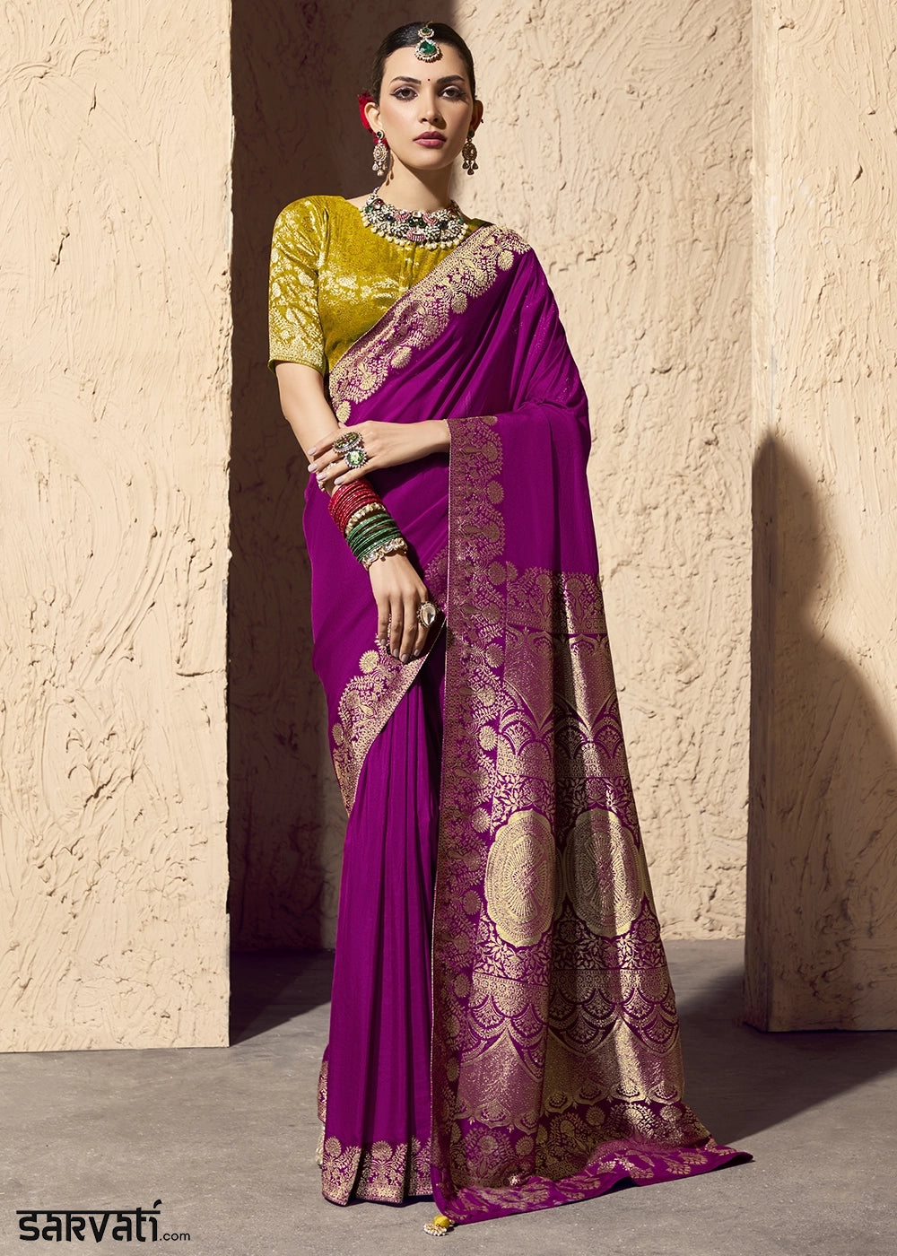 Electric Purple Zari Woven Satin Silk Banarasi Saree with Brocade Blouse