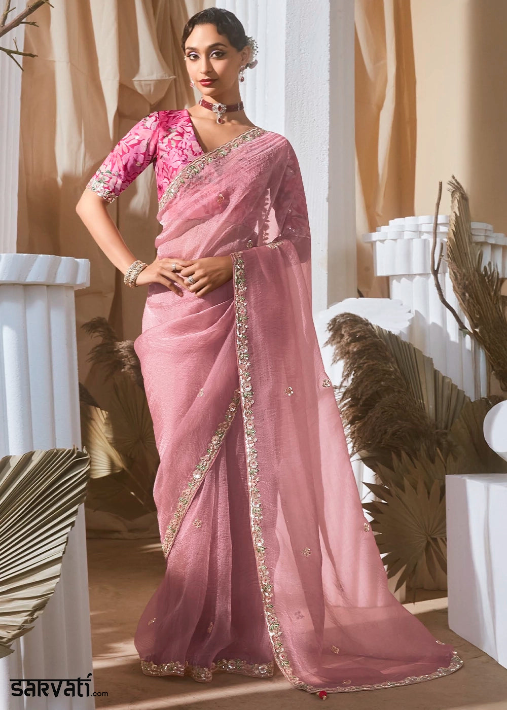Rouge Pink Tissue Georgette Silk Saree with Thread & Sequin Work