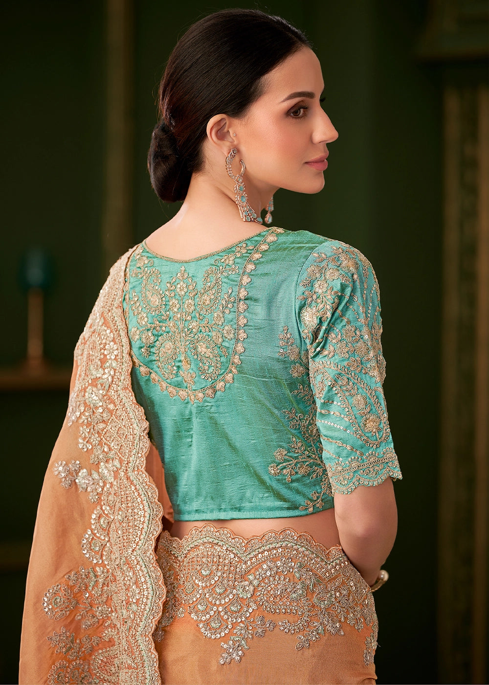 Cantaloupe Orange Viscose Georgette Silk Saree with Thread & Sequin Work
