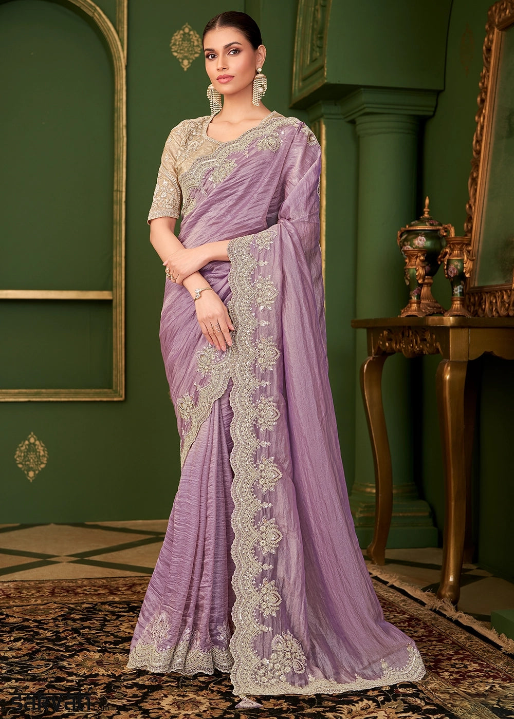 Shades Of Purple Organza Tissue Saree Paired with Embroidered Blouse