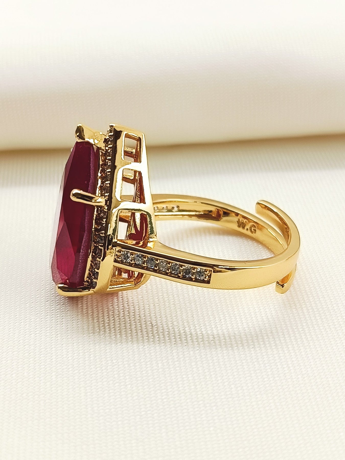 Elevate Your Everyday Elegance With This Exquisite Ruby American Diamond Finger Ring. Crafted From Gold-plated Brass, This Piece Combines Durability With A Luxurious Finish That Catches The Light Beautifully. The Stunning American Diamond Delivers Brilliant Sparkle And Sophistication At An Accessible Price Point. Perfect For Those Seeking Timeless Style Without Compromise, This Ring Makes An Ideal Addition To Any Jewelry Collection Or A Thoughtful Gift For Someone Special.
