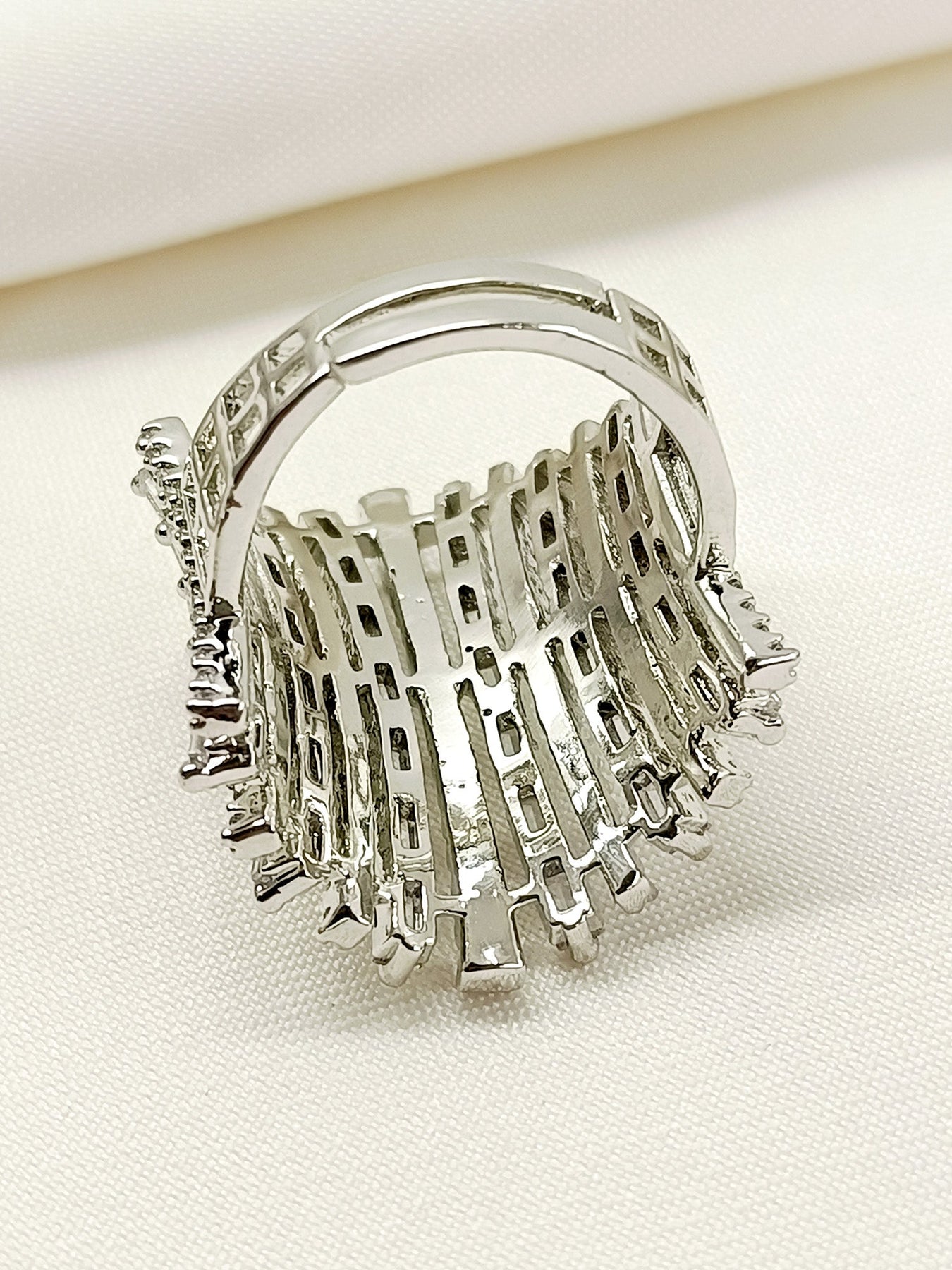 This American Diamond Finger Ring Is The Perfect Addition To Any Jewelry Collection. The Ring Features A Stunning Silver Plating On Brass Metal, Accented By Sparkling American Diamonds. Crafted With High Quality Materials, This Ring Provides Both Elegance And Durability. A Must-have For Any Fashion-forward Individual.