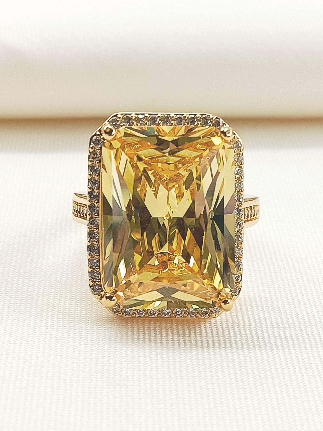 Elevate Your Jewelry Collection With This Exquisite Yellow American Diamond Finger Ring, Expertly Crafted From Gold-plated Brass For Lasting Brilliance. The Stunning Citrine Stone Radiates Warm, Golden Hues, While Premium American Diamonds Catch Light With Exceptional Sparkle And Clarity. This Versatile Piece Combines Sophisticated Design With Affordable Luxury, Making It An Ideal Choice For Everyday Elegance Or Special Occasions. The Durable Gold Plating Ensures Your Ring Maintains Its Lustrous Finish, While The Carefully Selected Gemstones Deliver The Refined Aesthetic Of Fine Jewelry. Perfect For Those Seeking Timeless Beauty Without Compromise.
