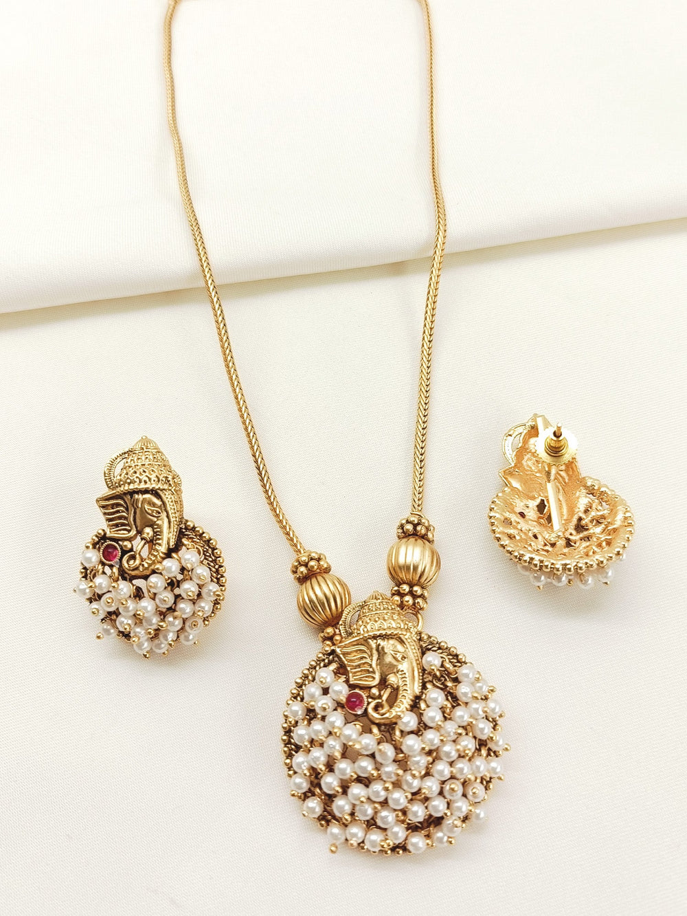 Diya White Pearl Antique Pendant Set