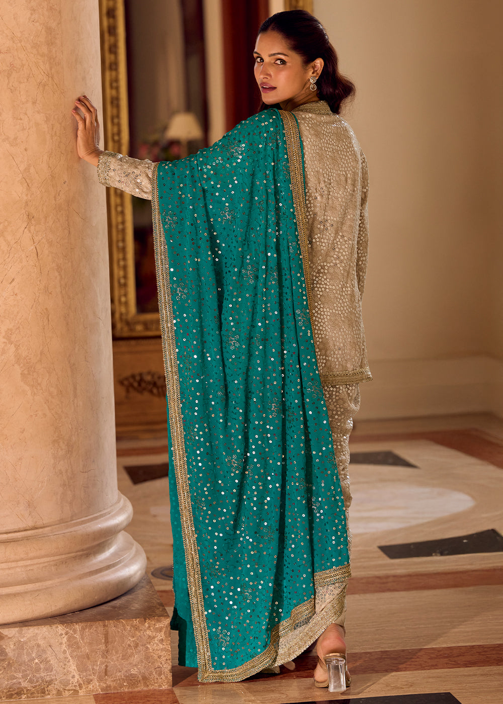 At Sarvati.com, we strive to present our designs with the utmost accuracy. However, actual product colors may vary slightly due to screen settings and lighting conditions during photography. Additionally, any accessories featured in the images are for styling purposes only and are not included unless explicitly mentioned.