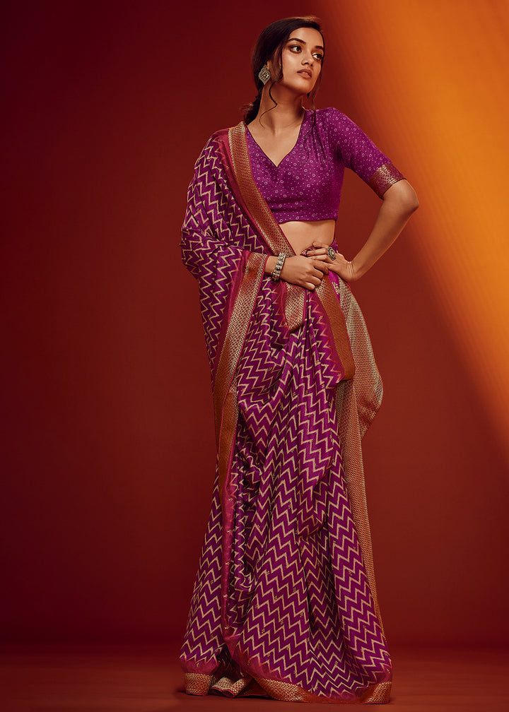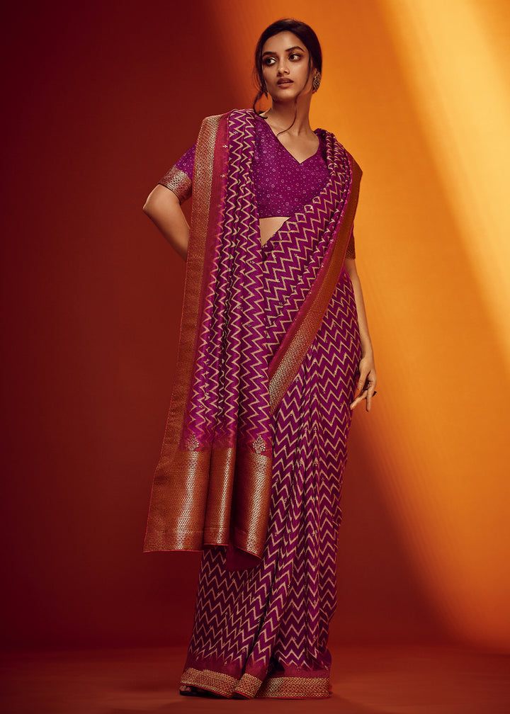 Orchid Purple Digital Printed Saree in Woven Viscose Silk Fabric